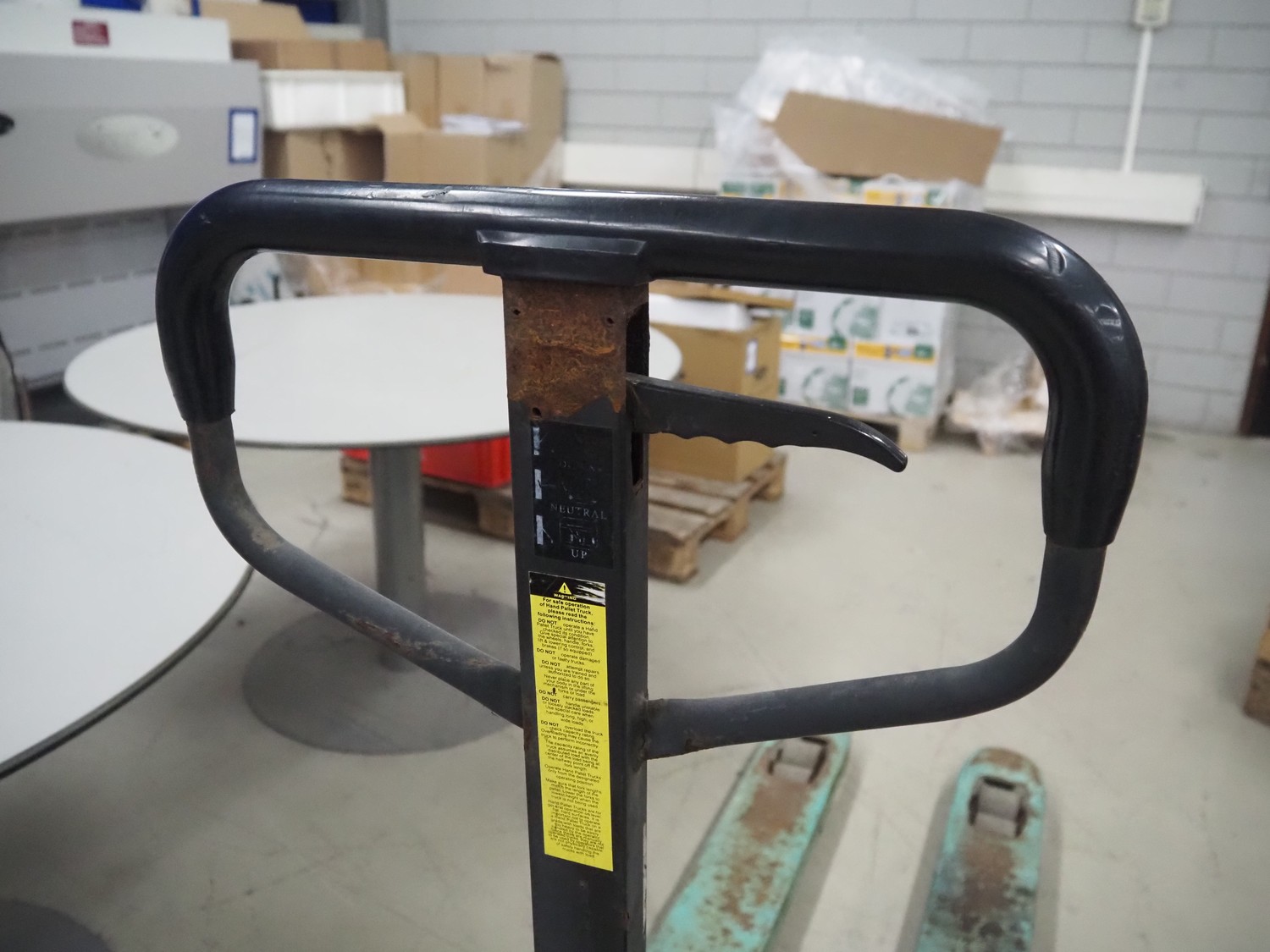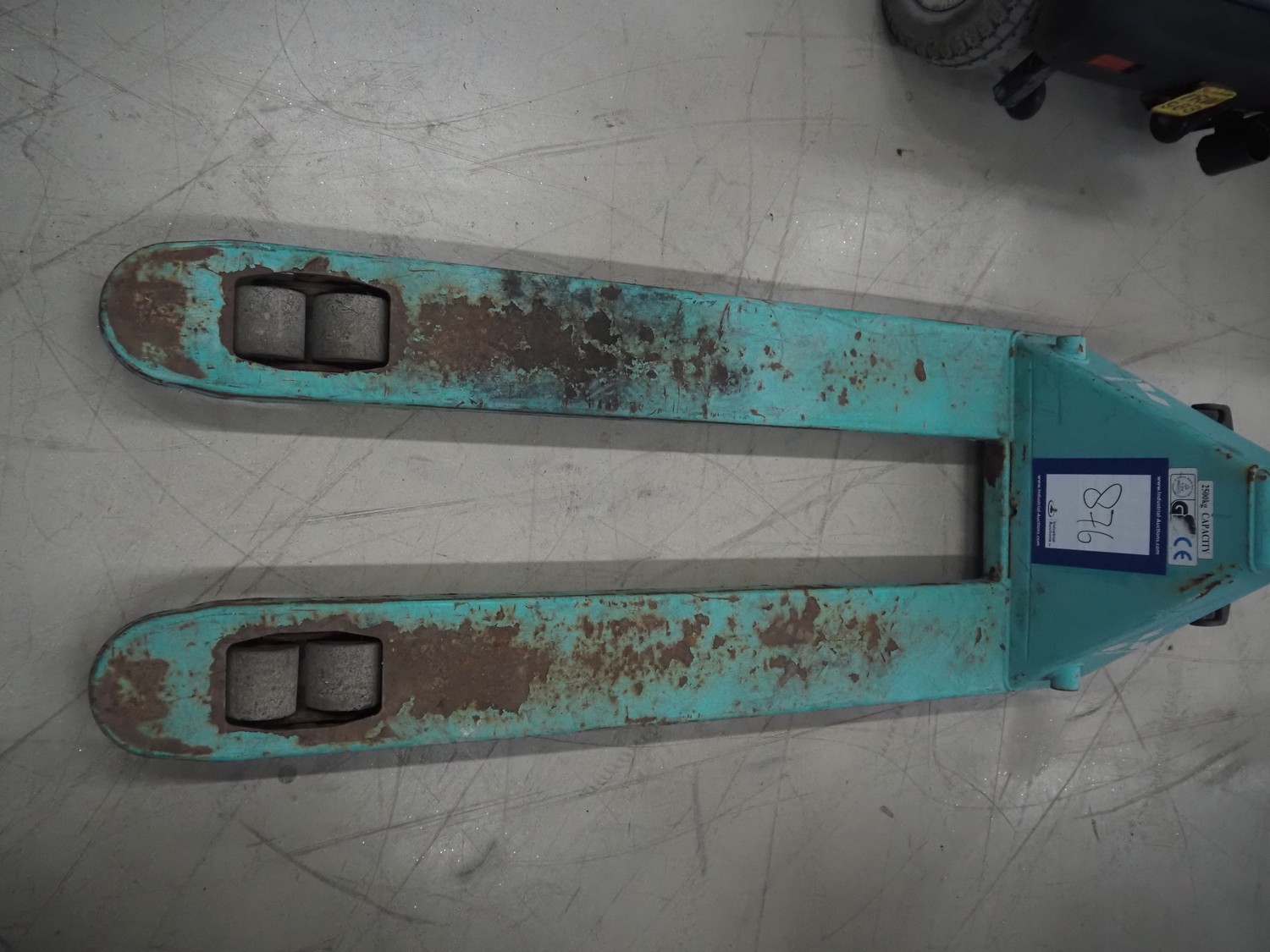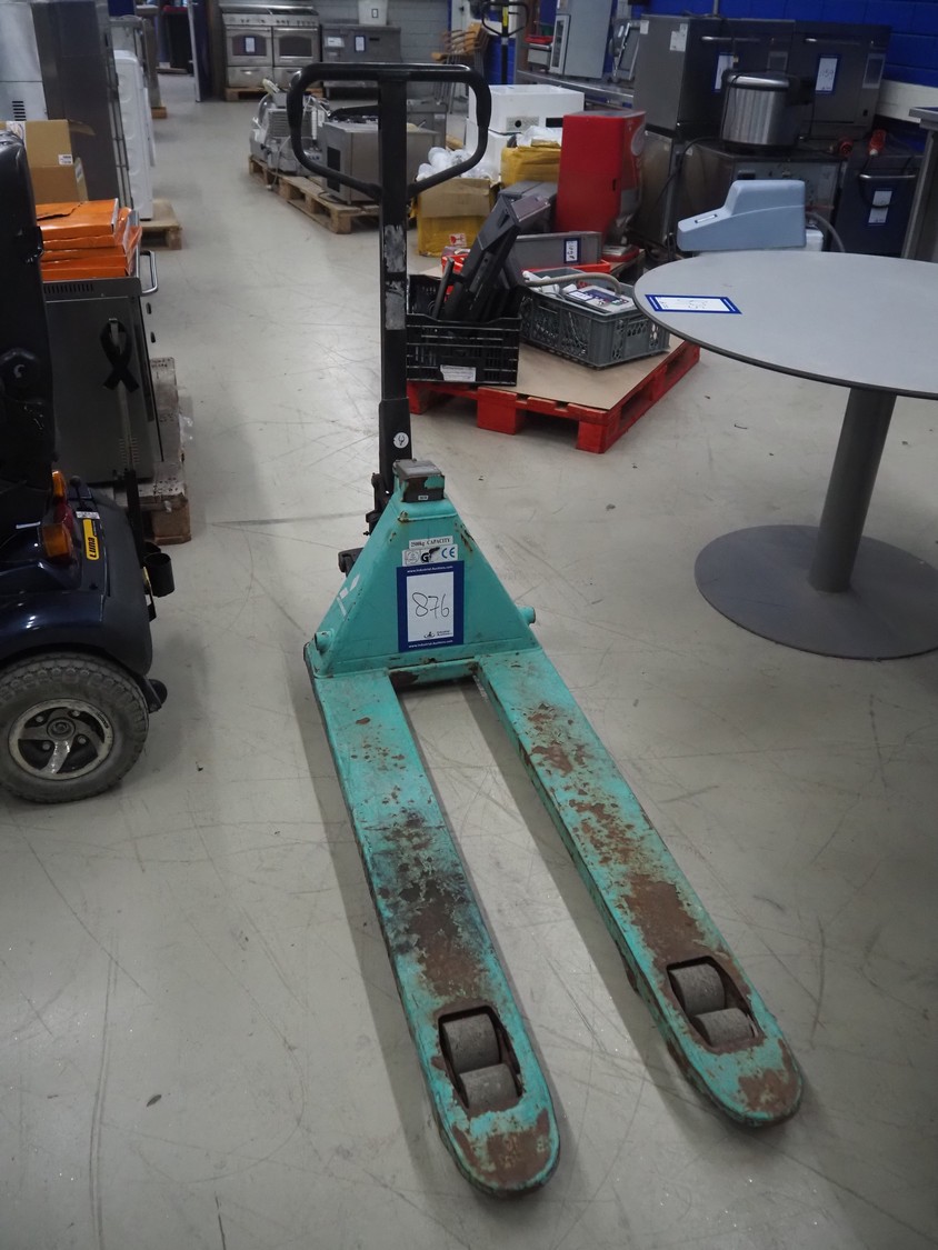 Mitsubishi pallet lifter with weighing option, number: 201501462, fork length: 1150 mm, total dimensions: 1500 mm x 520 mm x 1220 mm. Technical condition unknown.