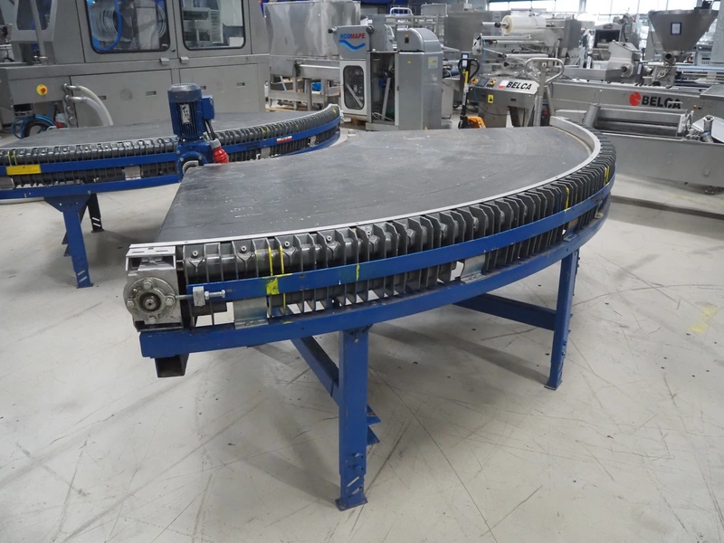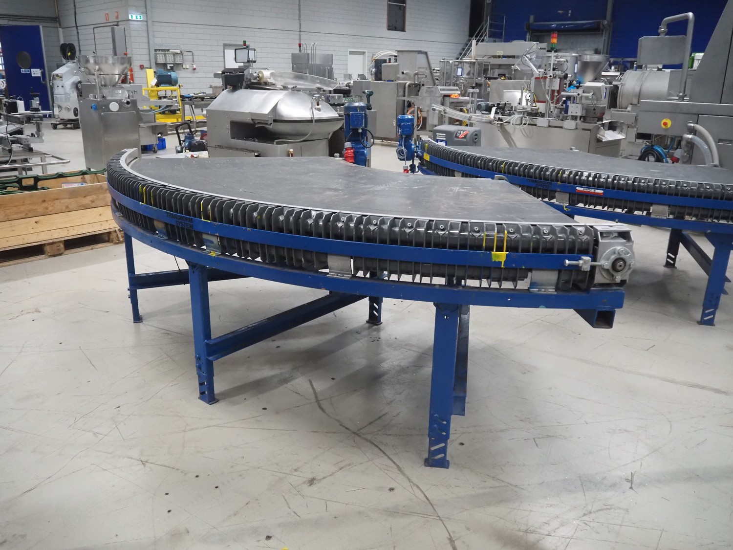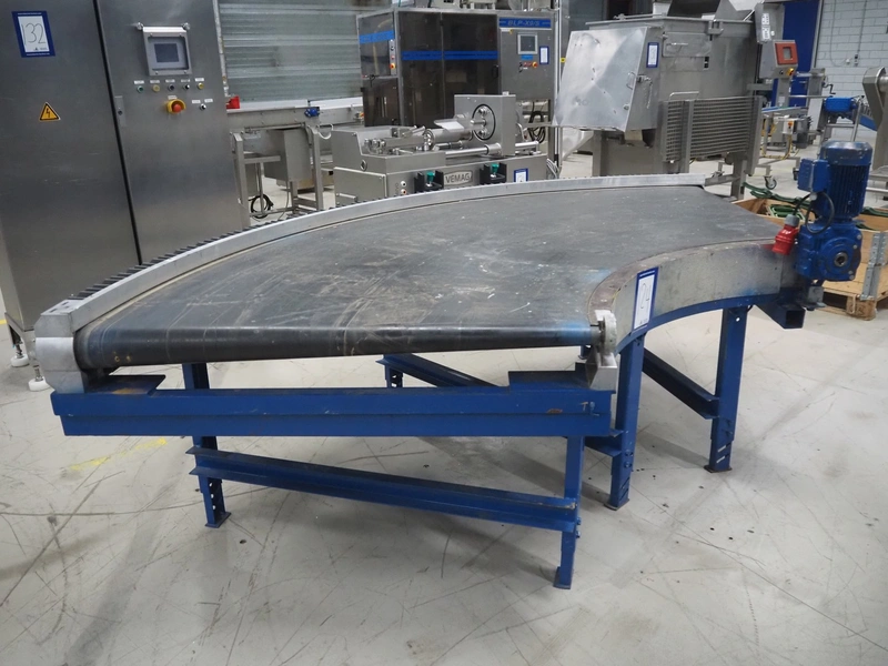 90° curve conveyor, plastic belt, belt width: 1200 mm, total dimensions: 2750 mm x 1700 mm x 1250 mm.