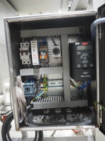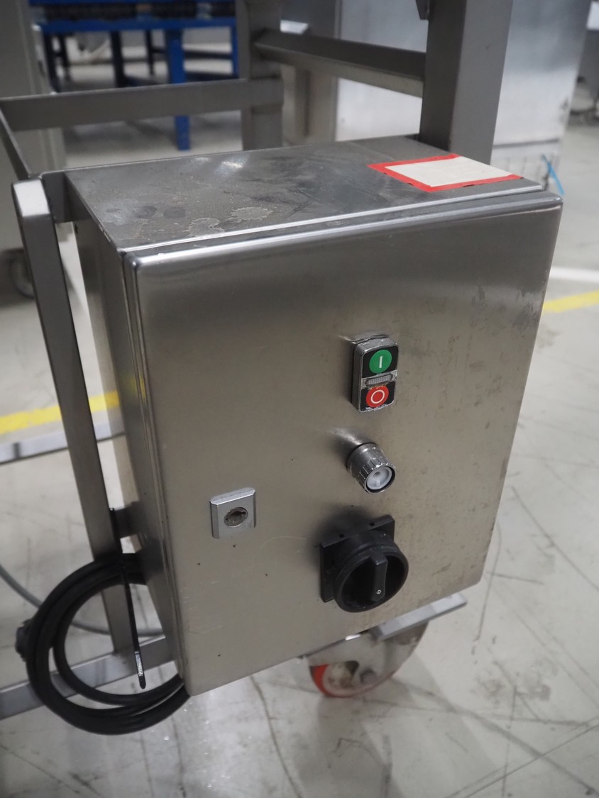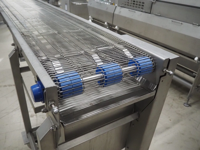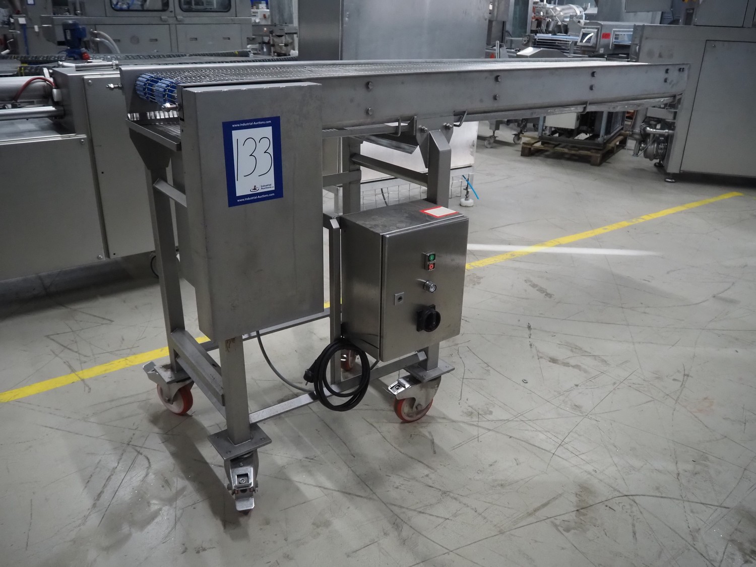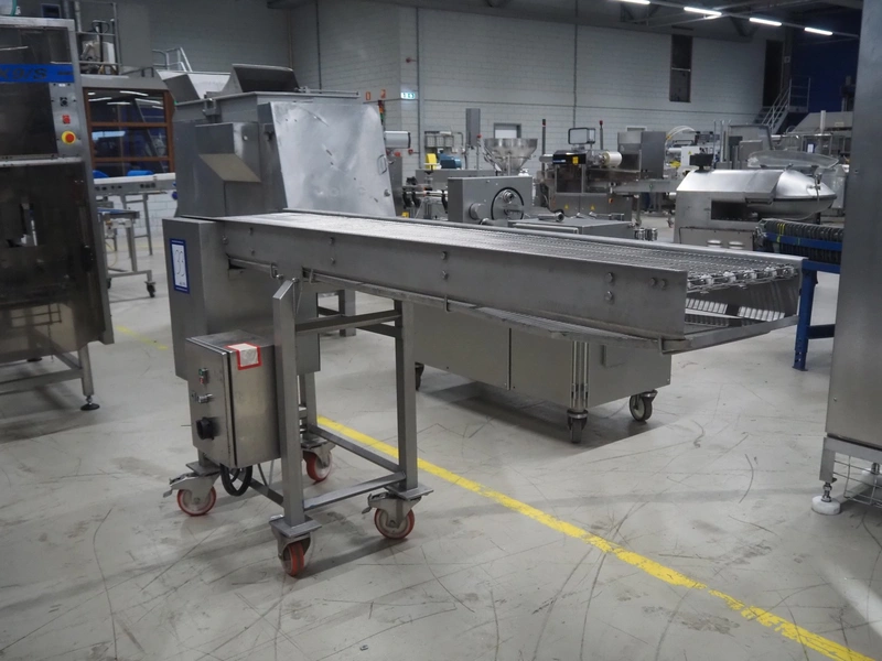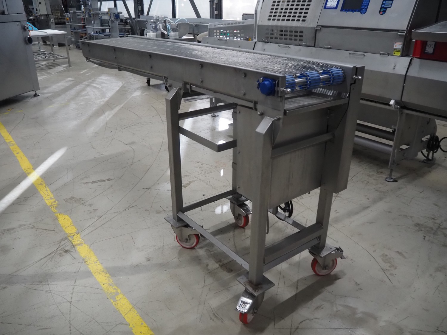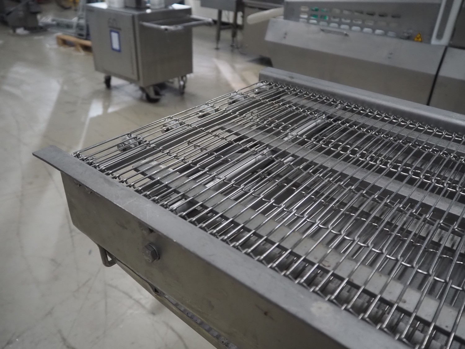 Mobile mesh belt, s/s frame, s/s mesh belt, belt width: 400 mm, total dimensions: 2200 mm x 600 mm x 1200 mm.