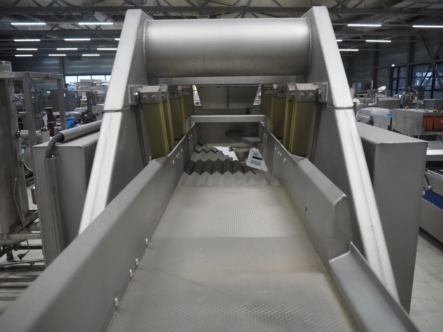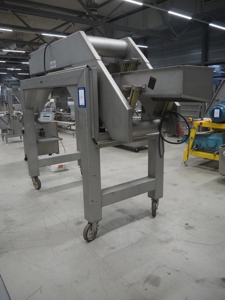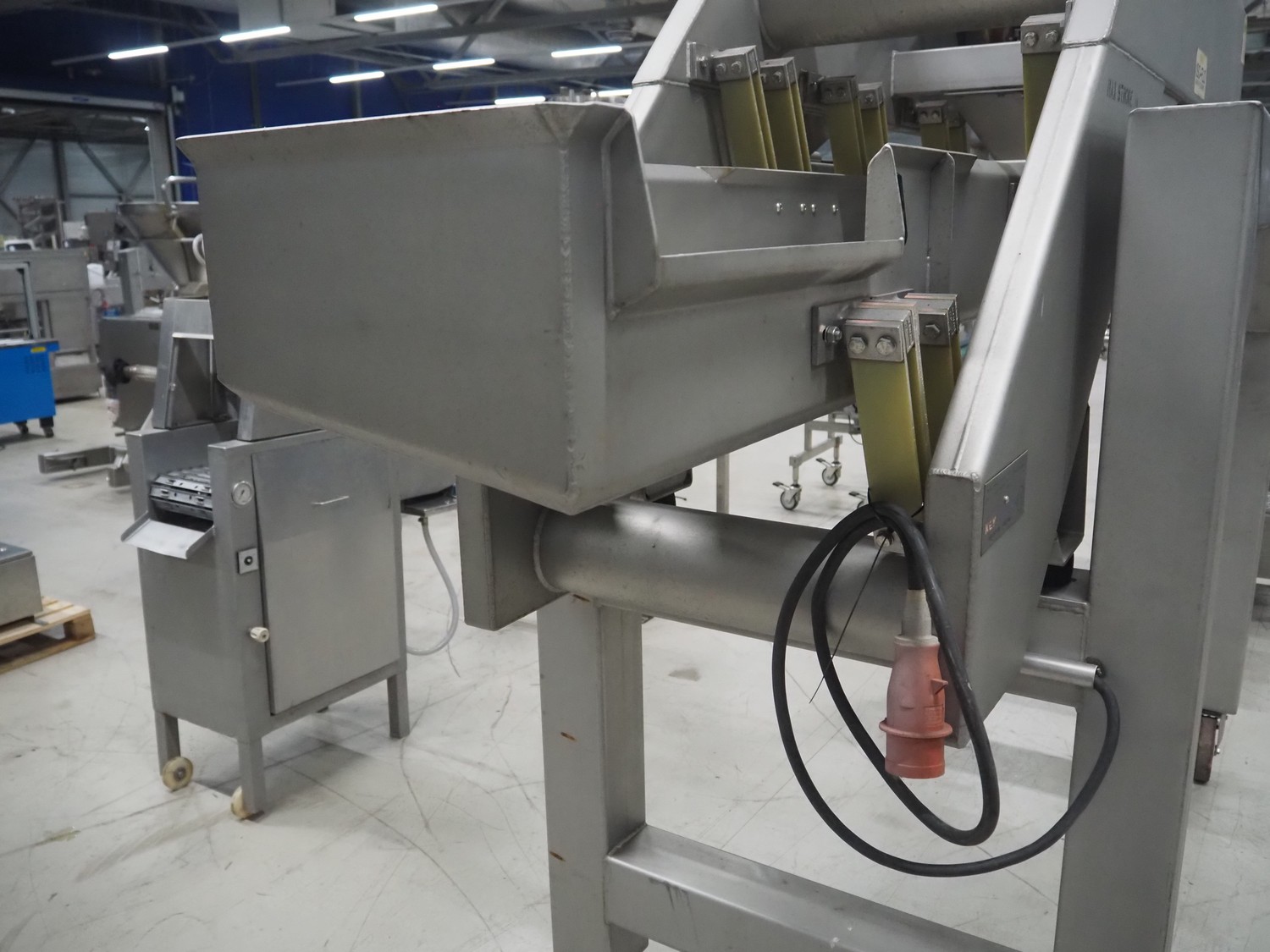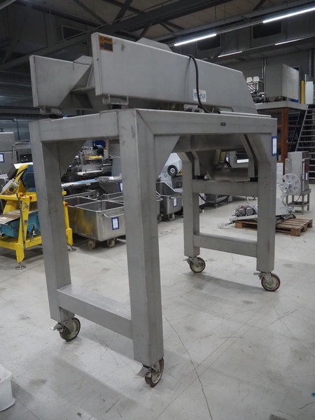 Key mobile vibrating gutter, type: MVTDV, number: 12758, year of construction: 2002, gutter width: 400 mm, total dimensions: 3150 mm x 1130 mm x 2400 mm.