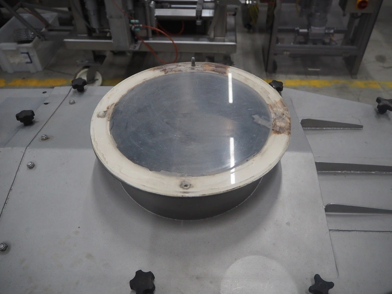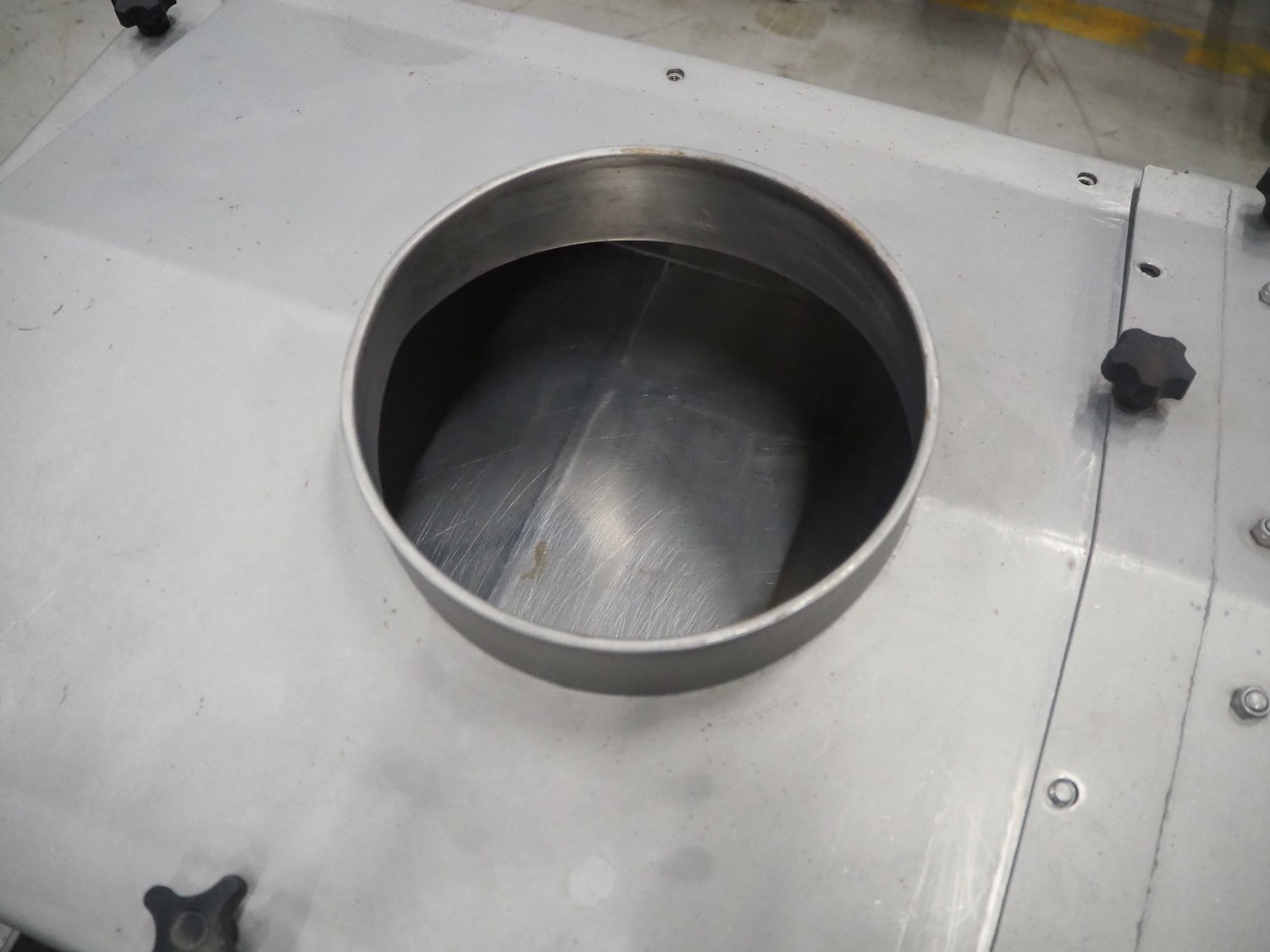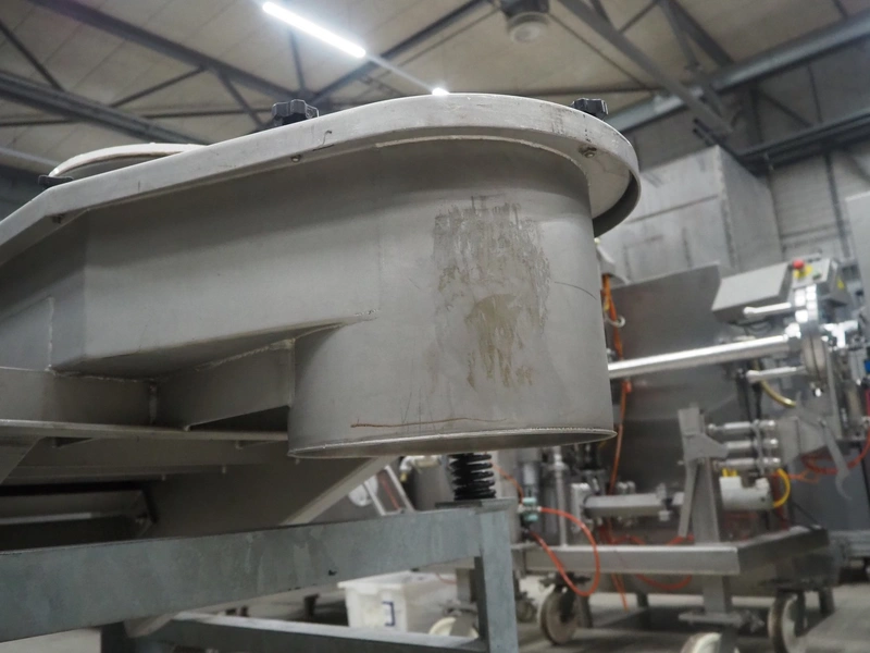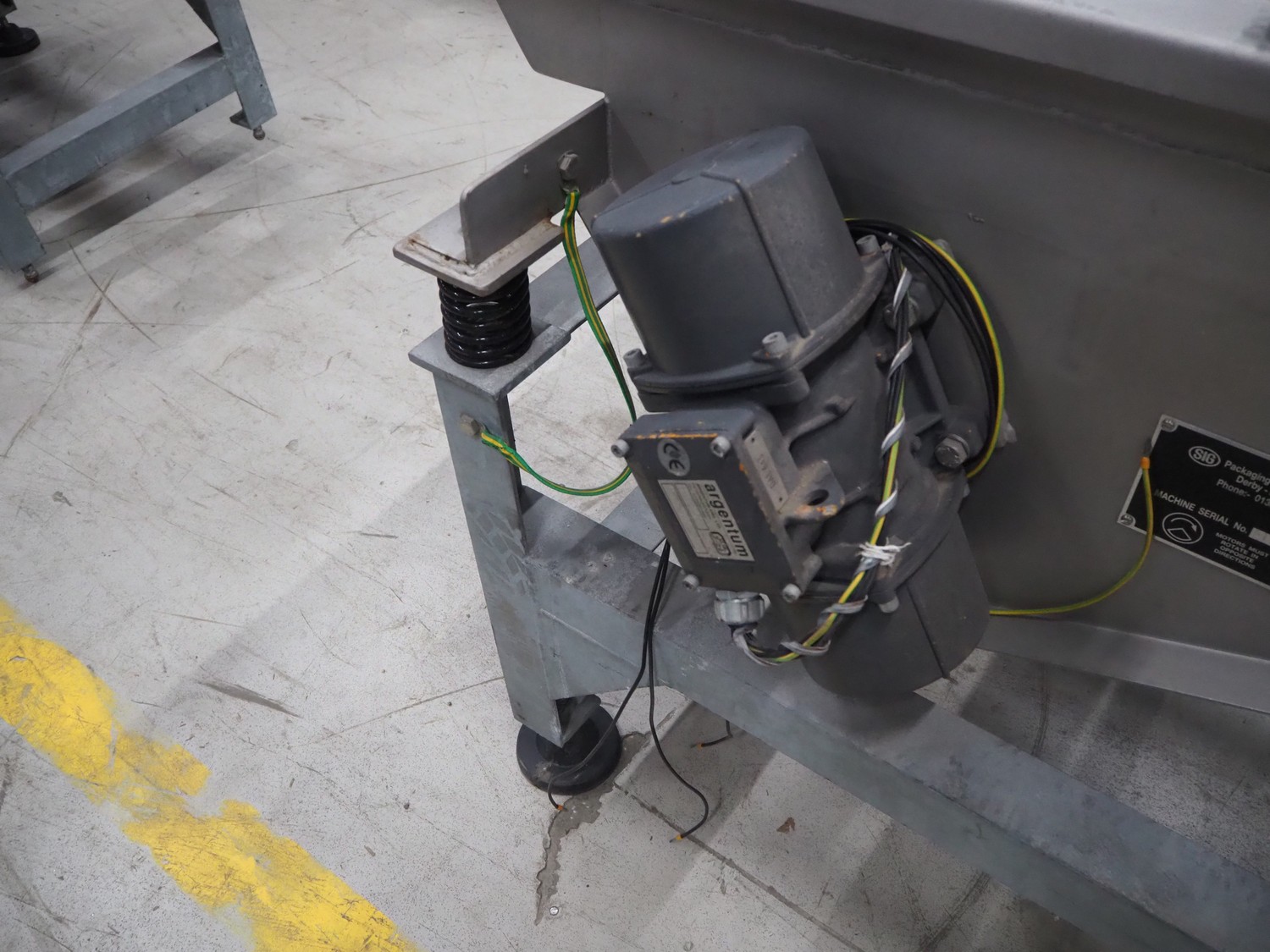 SIG Packaging Technology s/s vibrating gutter, serial number: MV 1058, gutter width: 500 mm, total dimensions: 1800 mm x 900 mm x 1100 mm.