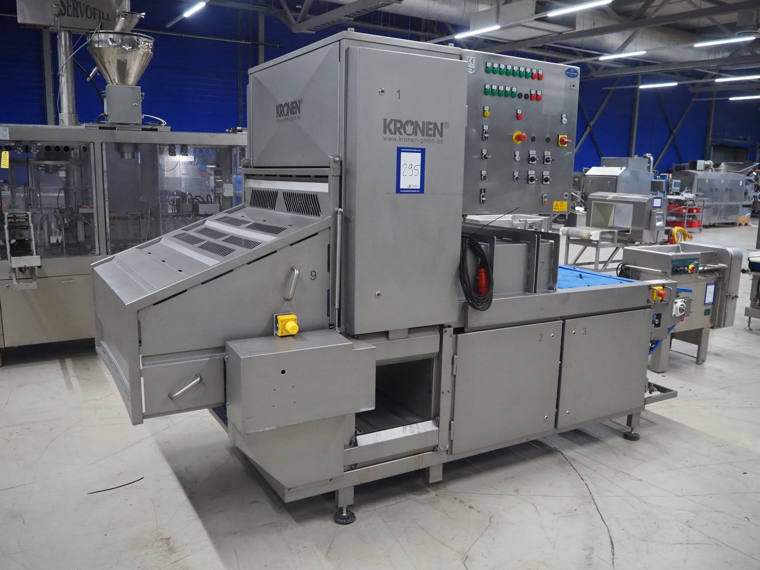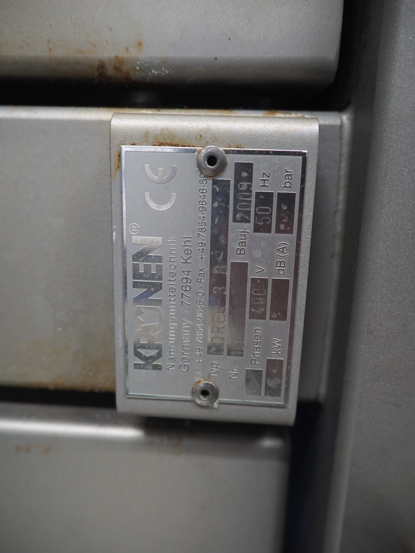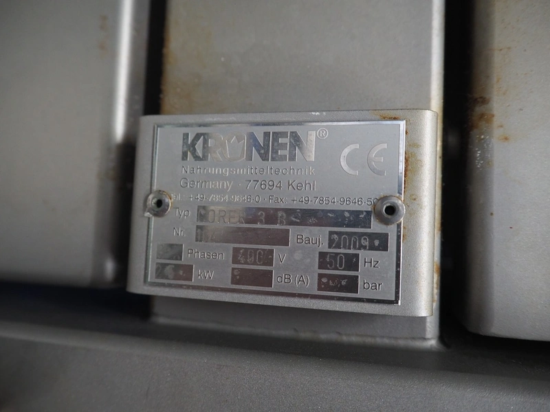 Kronen corer used for cabbages and lettuce, type: CORER 3 B, number: 164, year of construction: 2009, 400 V, 3 Ph, 50 Hz, 2.6 kW, 3 lanes, maximum diameter product: 240 mm, total dimensions: 3500 mm x 1500 mm x 2200 mm.