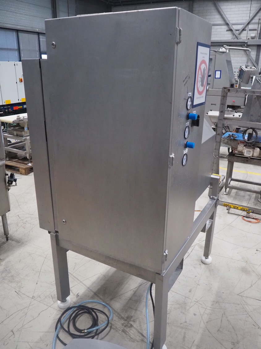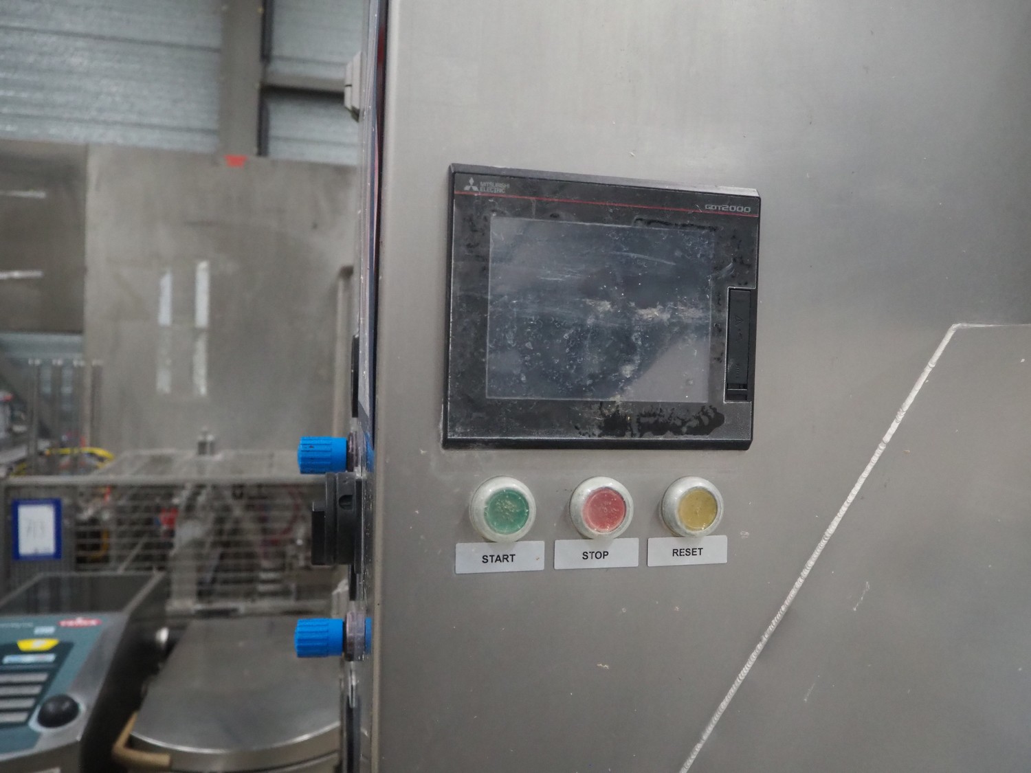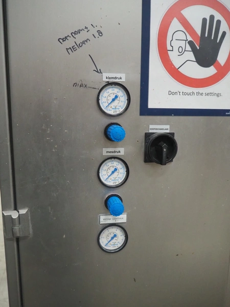 Feltracon melon peeler for 6 melons, type: 61M, number: 3615-61M1, year of construction: 2009, 230/400 V, 0.6 kW, diameter each station: 105 mm, total dimensions: 1450 mm x 980 mm x 2050 mm.