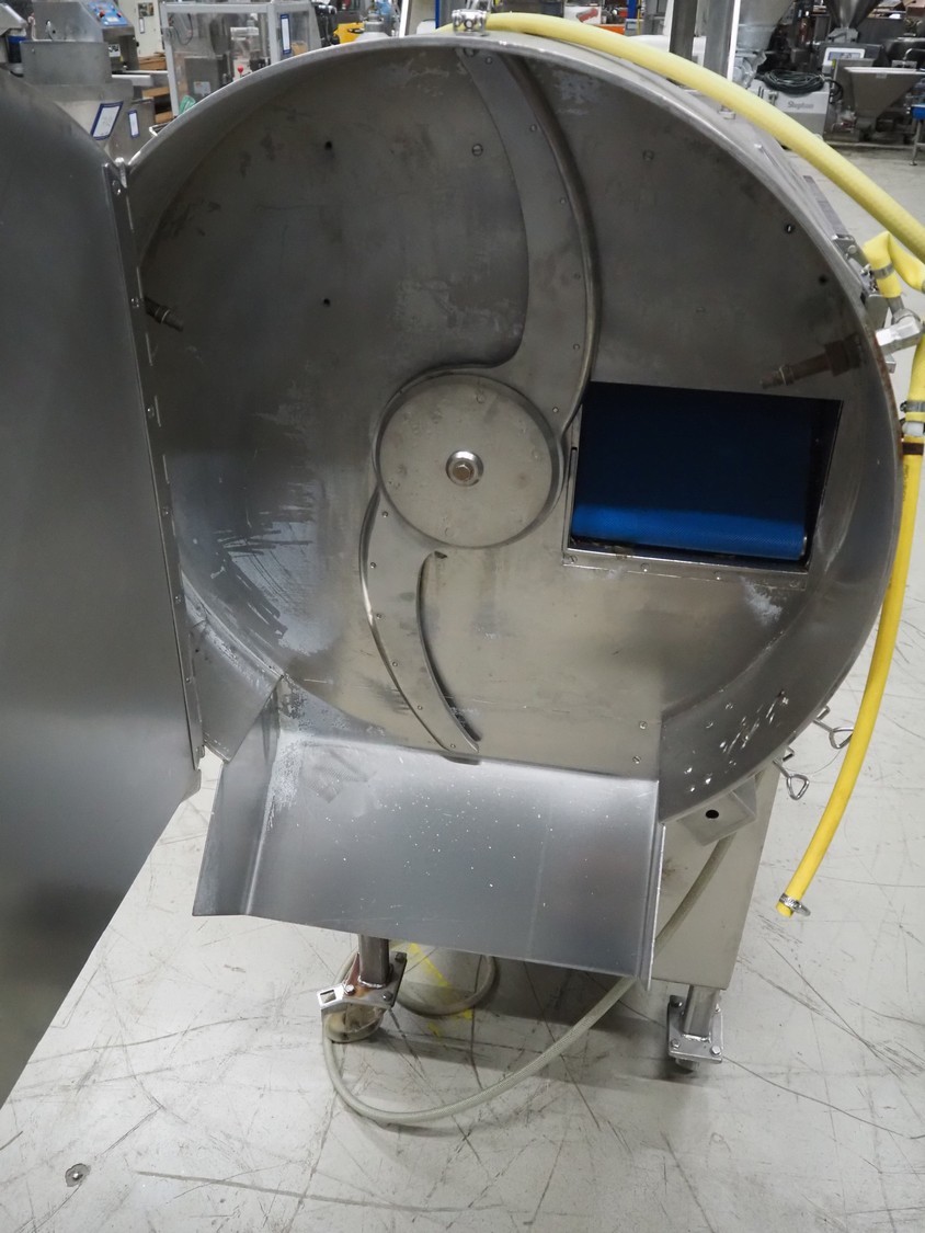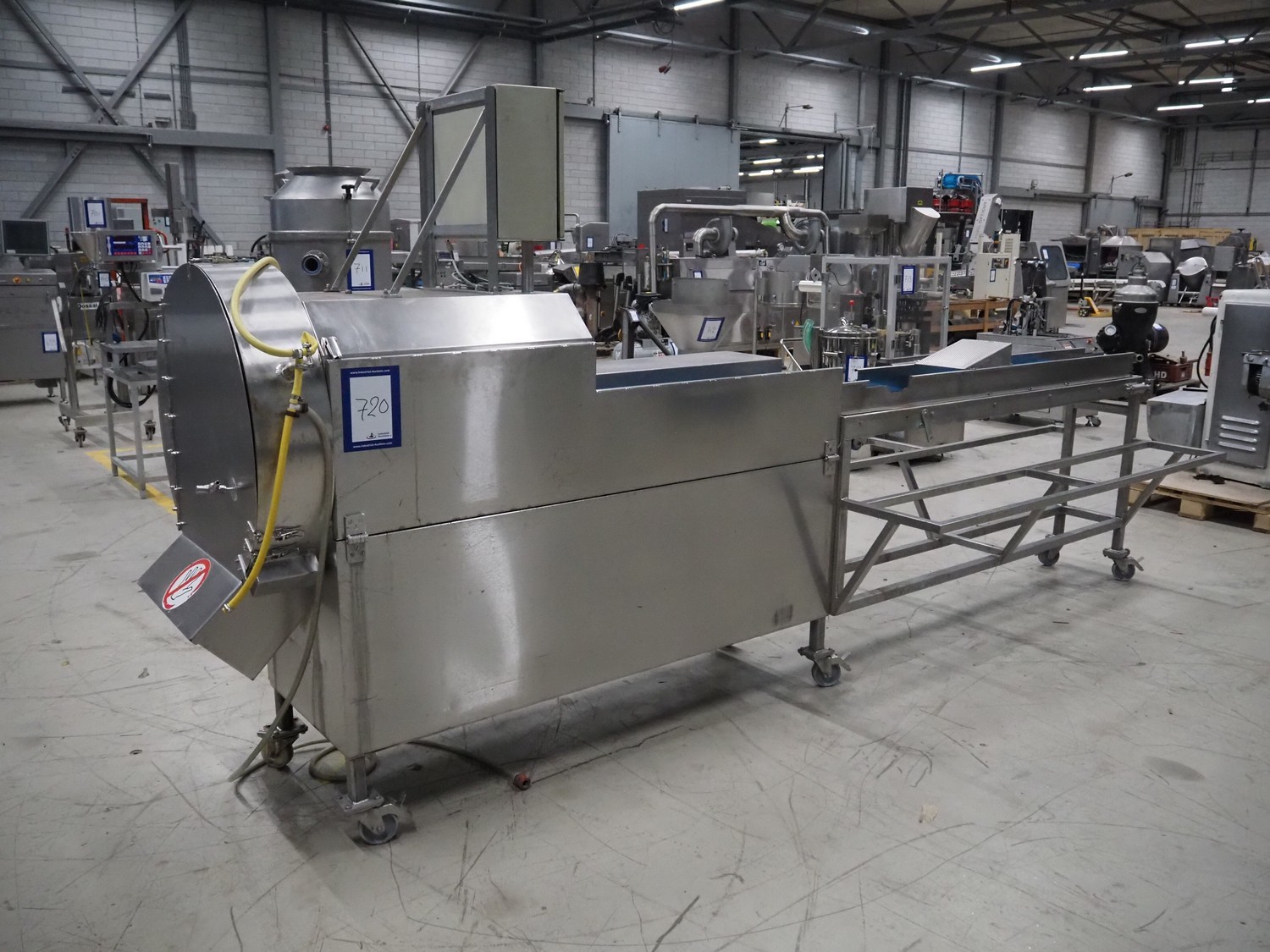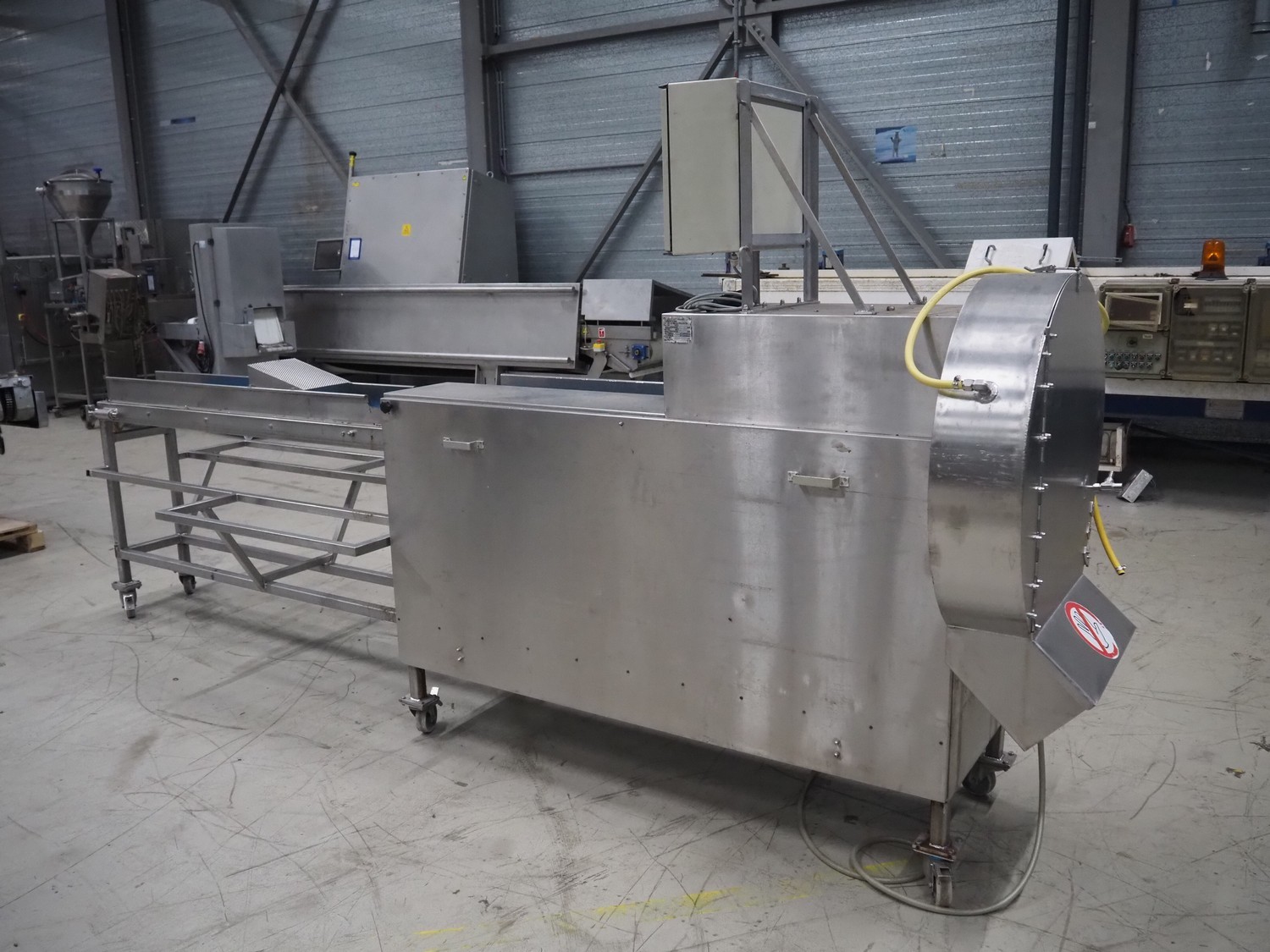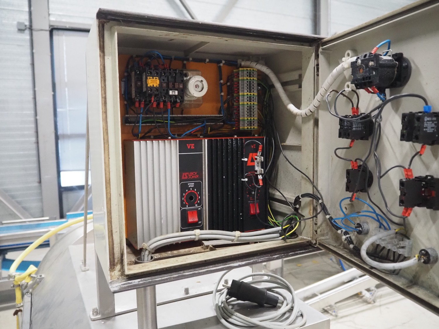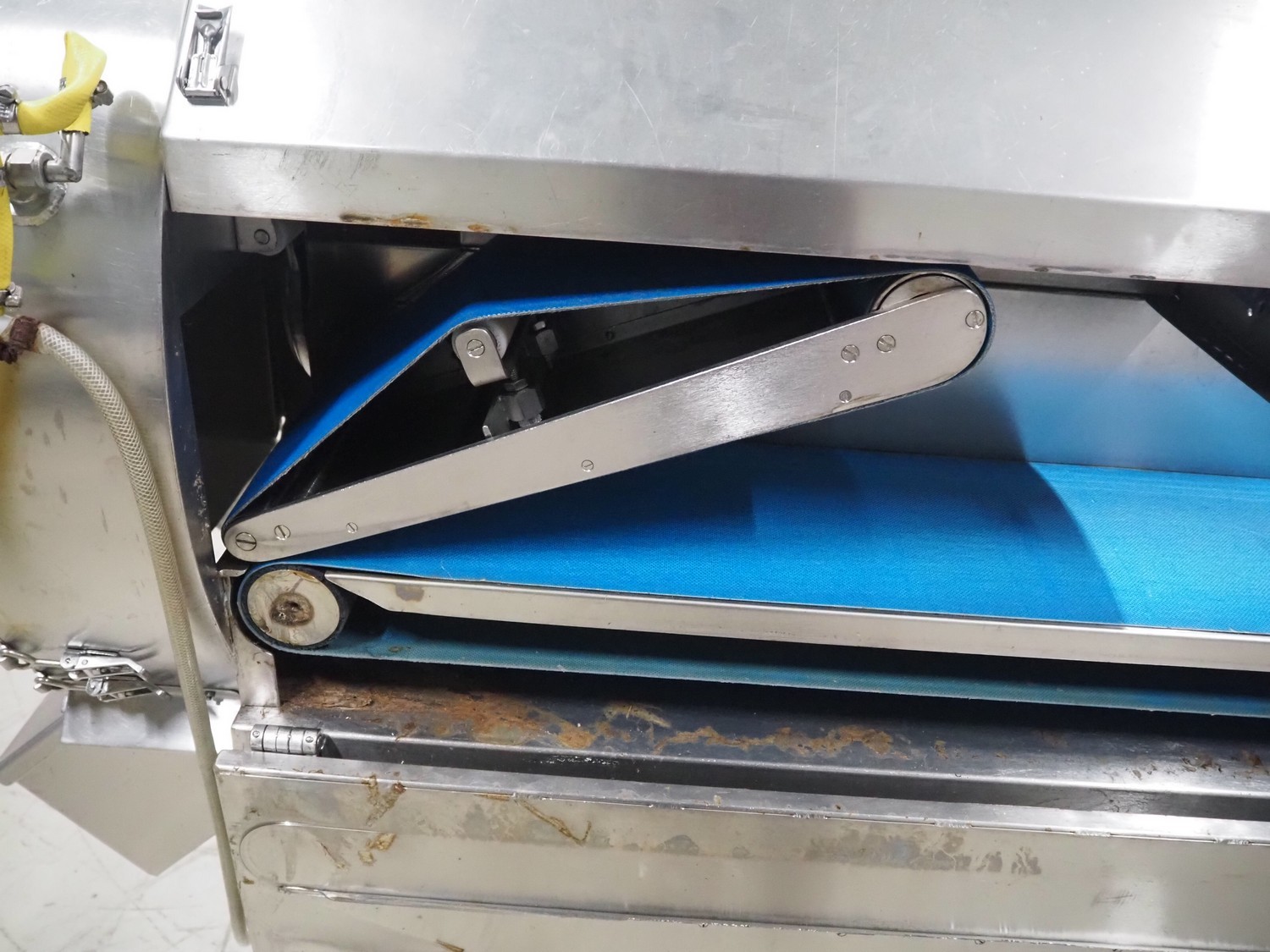 Eillert mobile vegetable slicer, type: G3300, serial number: 382-9037, 220 V, 4.2 A, plastic belt, belt width: 250 mm, total dimensions: 4170 mm x 1140 mm x 1900 mm.