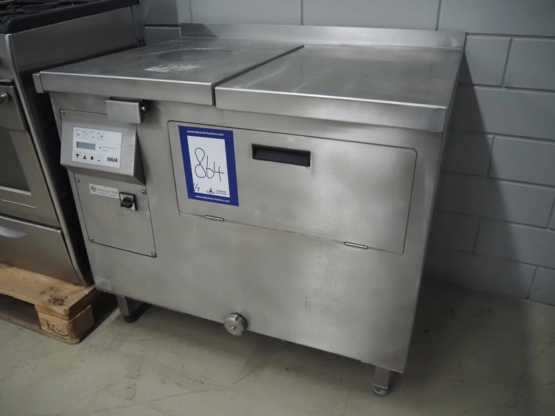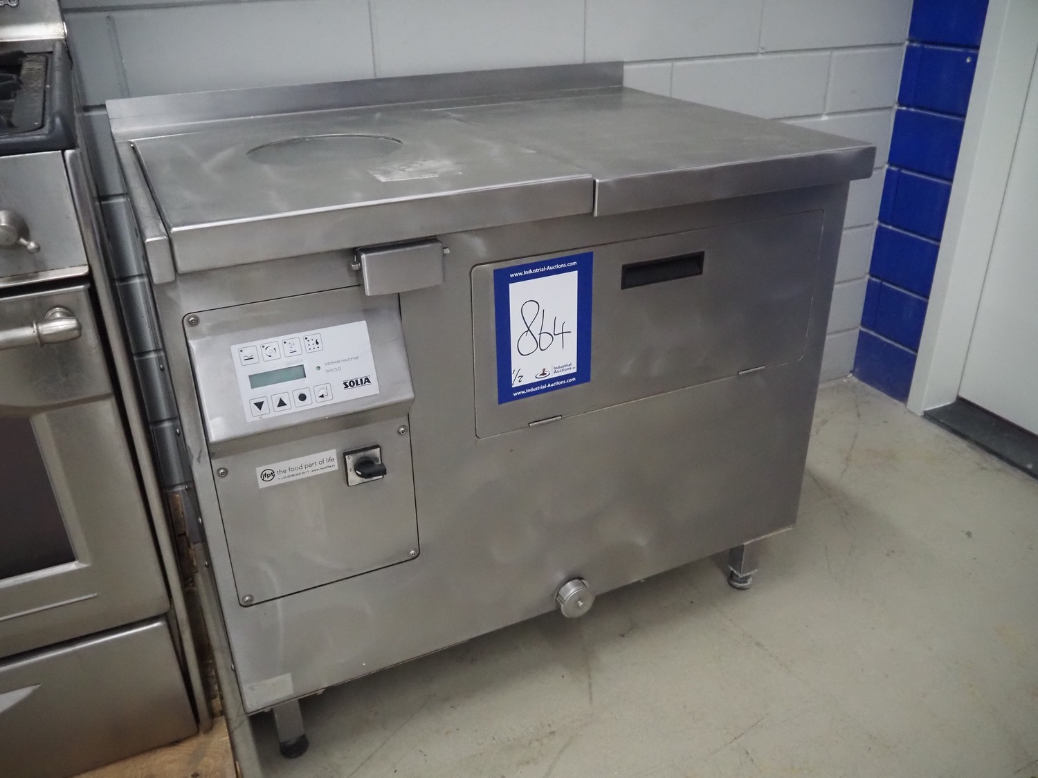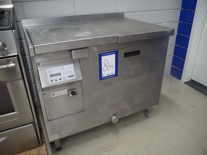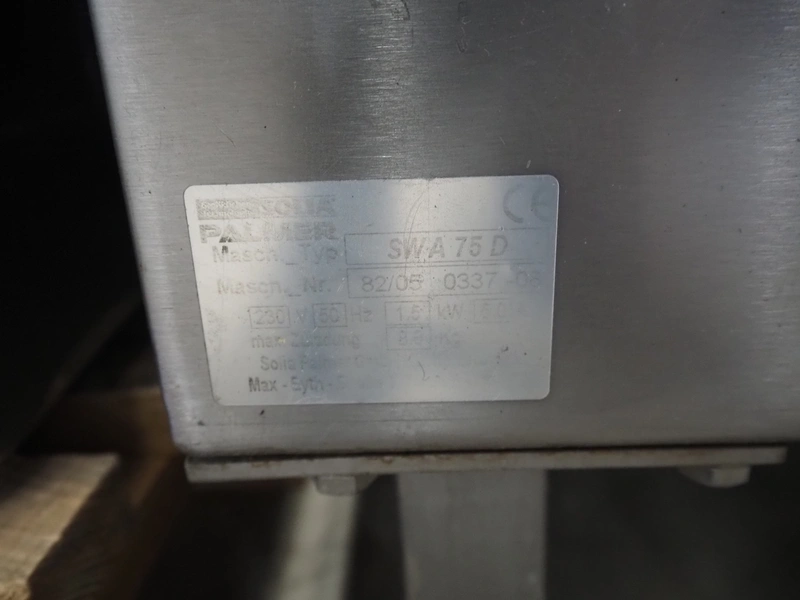 Solia salad washer and dryer, type: SWA 75 D, machine number: 82/05 0337 08, 230 V, 50 Hz, 1.5 kW, dimensions washer: Ø 420 mm x 350 mm, working dimensions: Ø 395 mm x 290 mm, total dimensions: 1000 mm x 700 mm x 865 mm.