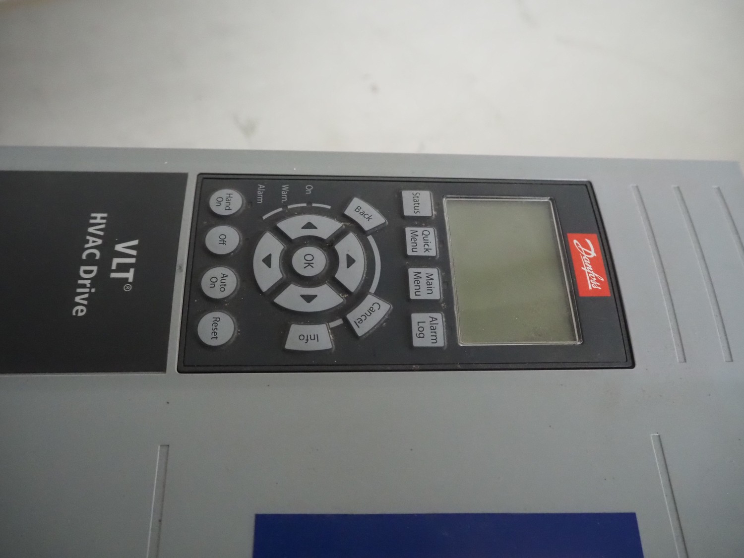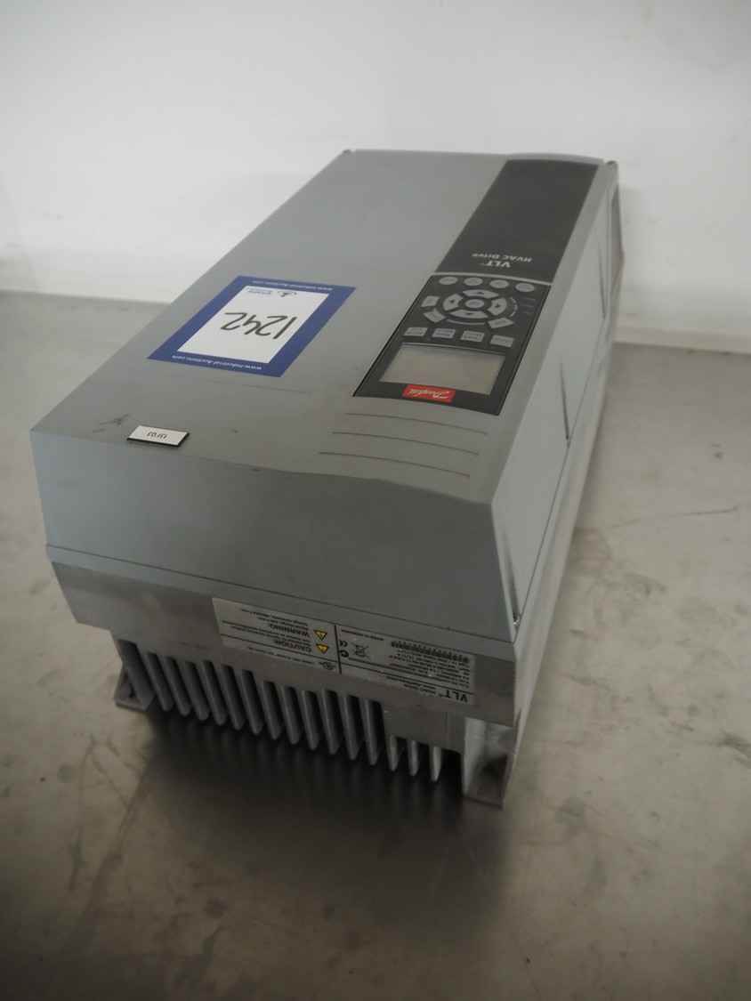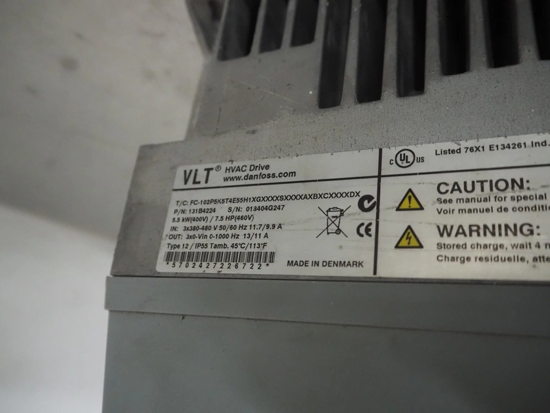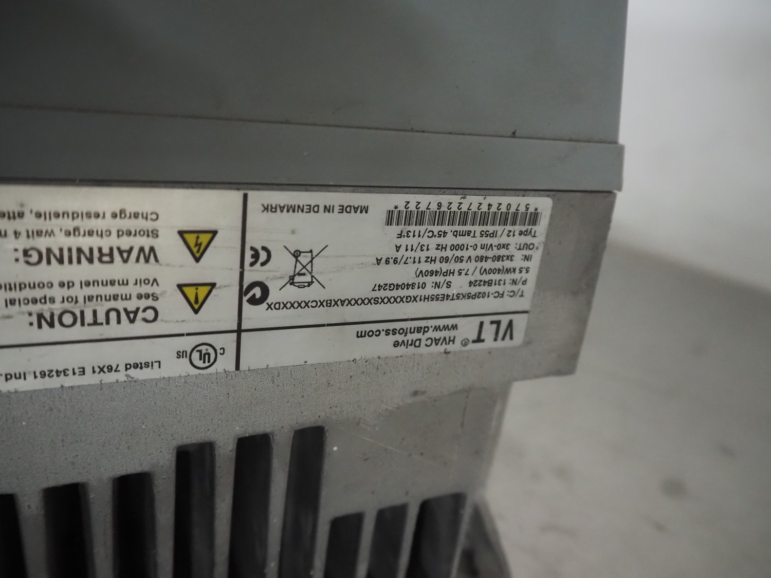 Danfoss frequency converter, model: VLT, serial number: 018404G247, 380/480 V, 3 Ph, 50/60 Hz, 11.7/9.9 A, dimensions: 250 mm x 200 mm x 450 mm.
