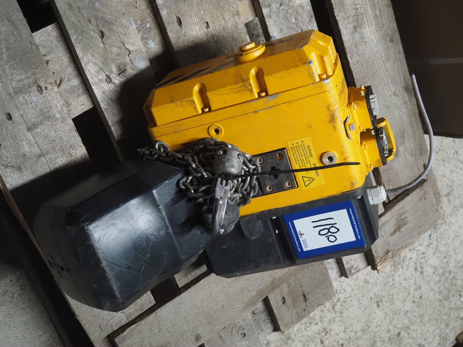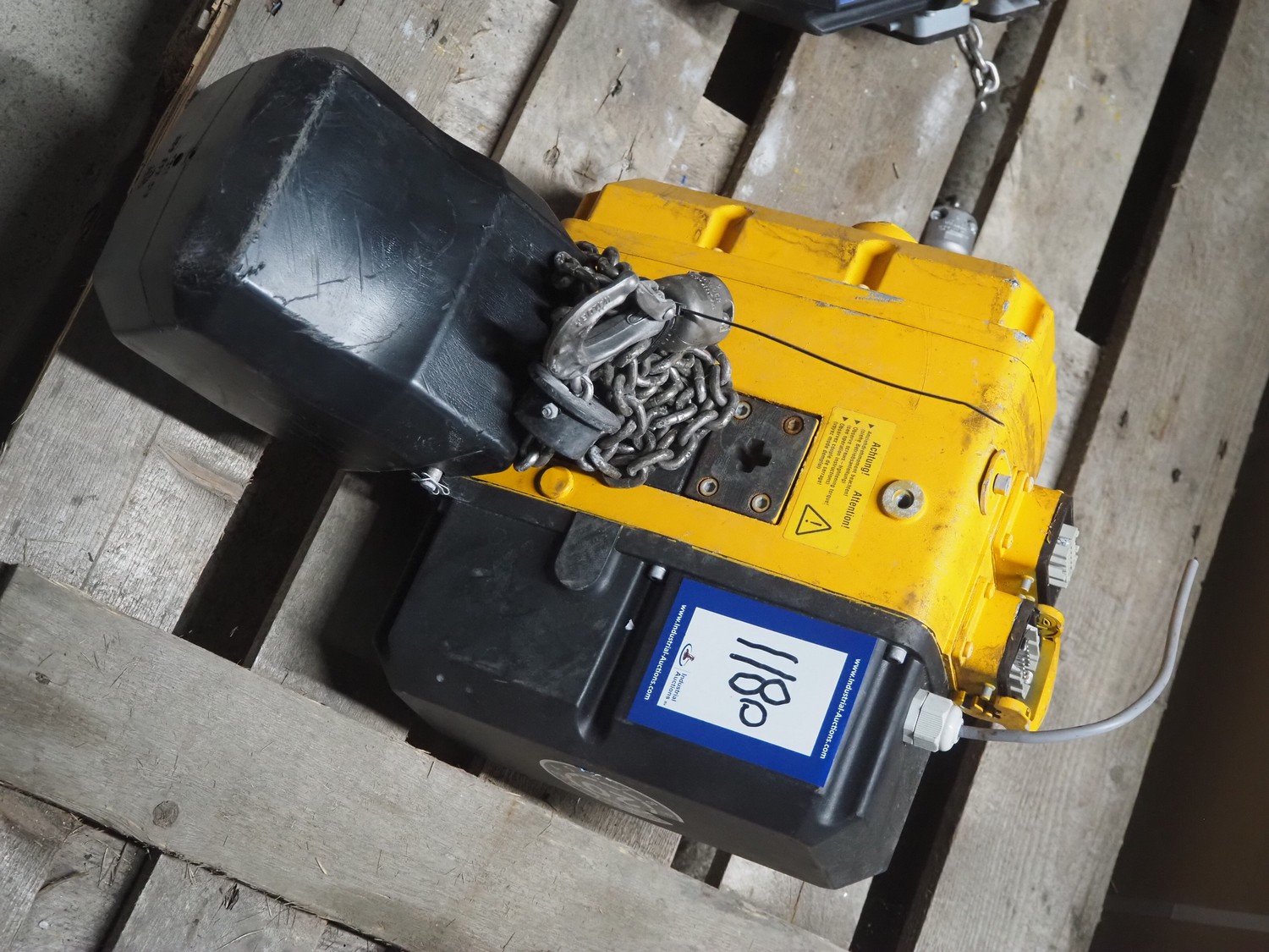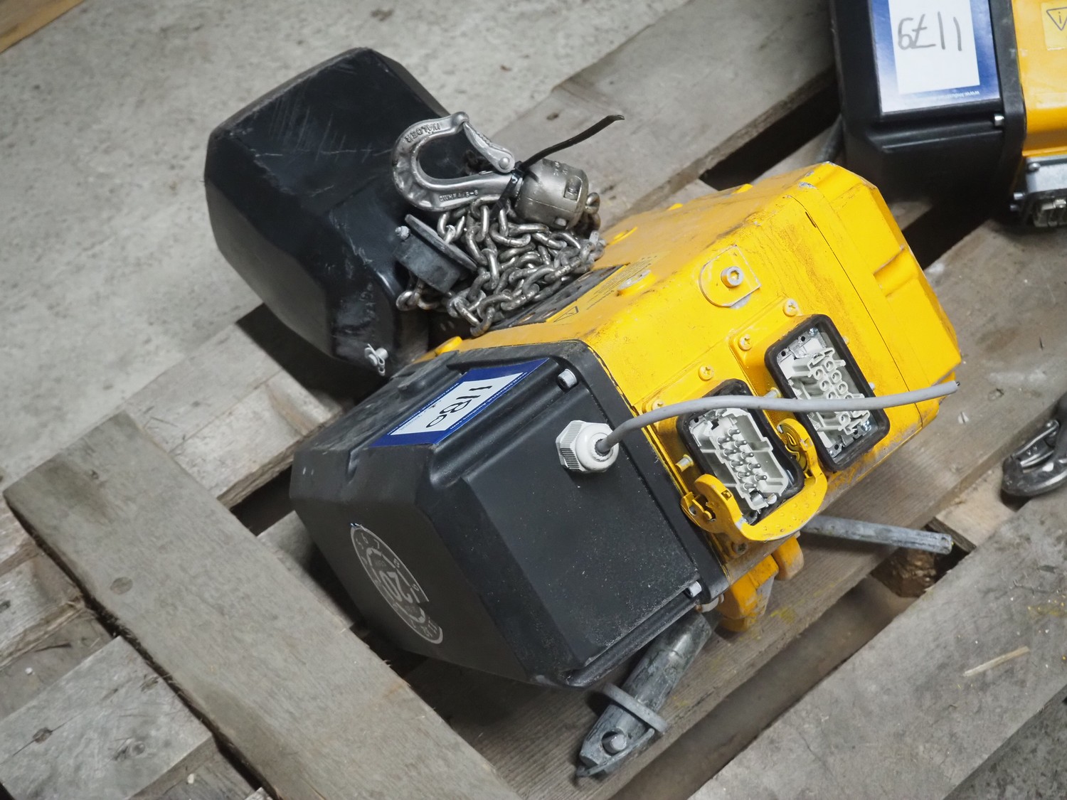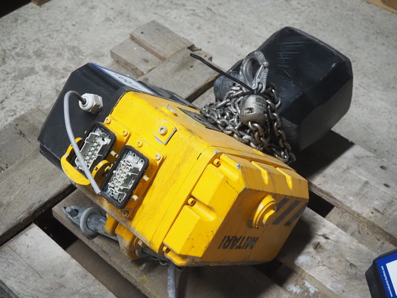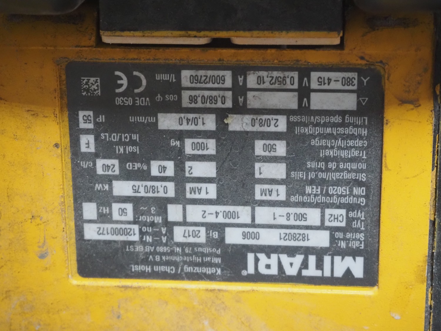 Mitari chain hoist, type: CH2 500.8-1 1000.4-2, serial number: 1828021 0006, year of construction: 2017, 380/415 V, 3 Ph, 50 Hz, 0.95/2.10 A, 0.18/0.75 kW, capacity: 500/1000 kg, dimensions: 370 mm x 320 mm x 400 mm.