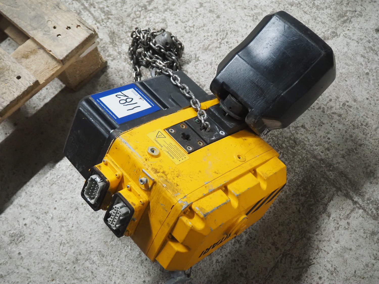 Mitari chain hoist, type: CH2 500.8-1 1000.4-2, serial number: 1828021 0005, year of construction: 2017, 380/415 V, 3 Ph, 50 Hz, 0.95/2.10 A, 0.18/0.75 kW, capacity: 500/1000 kg, dimensions: 370 mm x 320 mm x 400 mm.