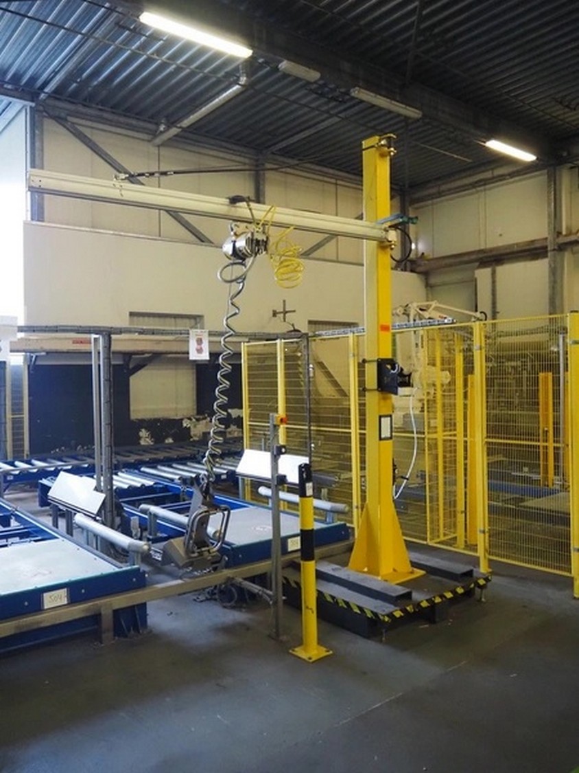Dotec / Ingersoll Rand lifting and balancing unit on steel beam, model: BW015080, serial number: KTB193, capacity: 68 kg, dimensions: 3500 mm x 1200 mm x 1000 mm.