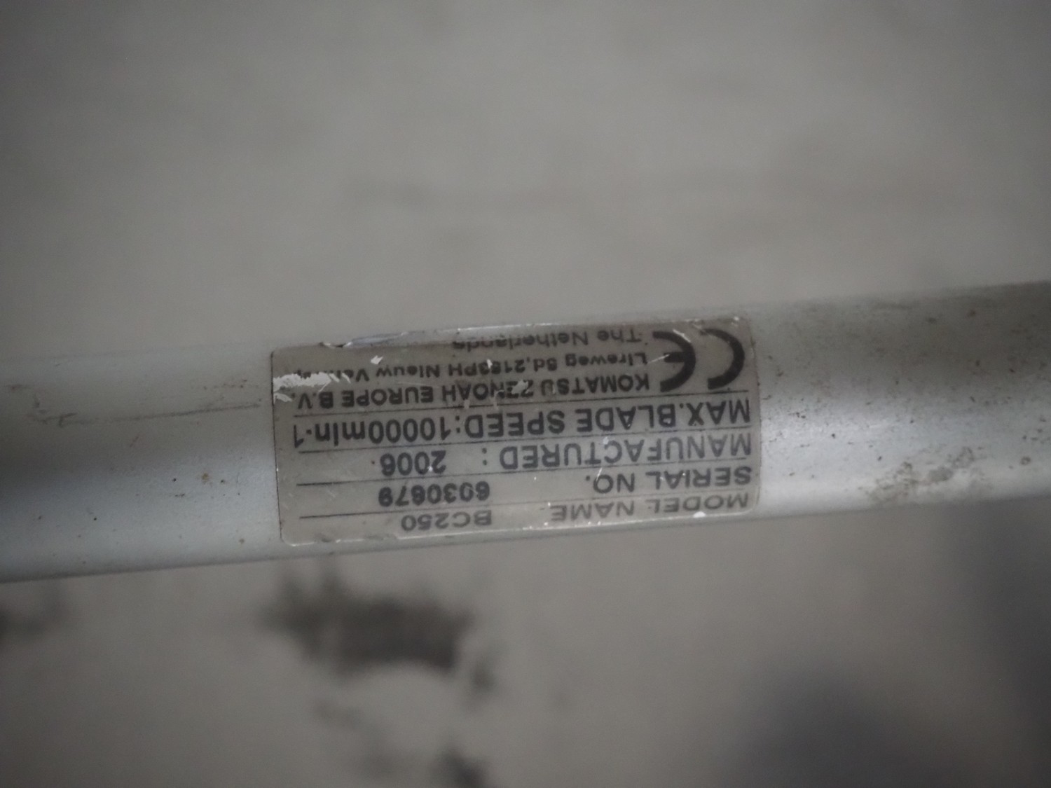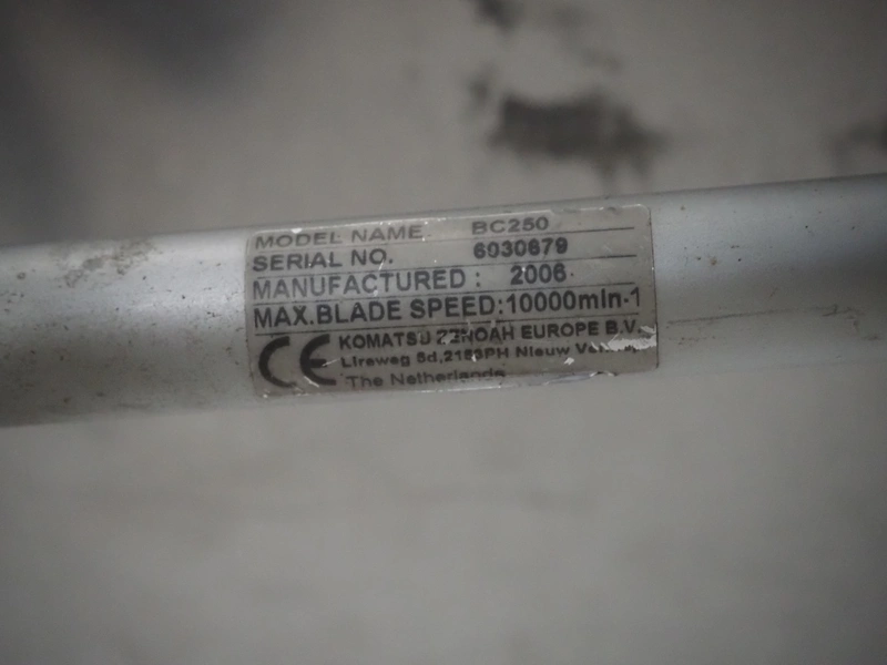 Komatsu Zenoah Co. bush trimmer, type: BC250, serial number: 6030679, year of construction: 2006, engine type: GT25N, 2 stroke, gasoline powered, dimensions: 1800 mm x 340 mm x 250 mm.