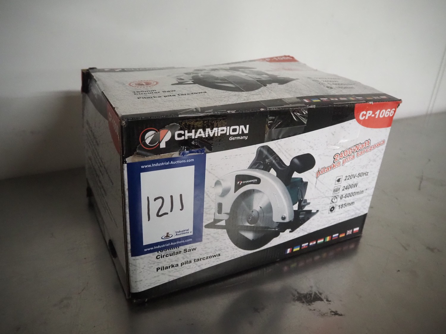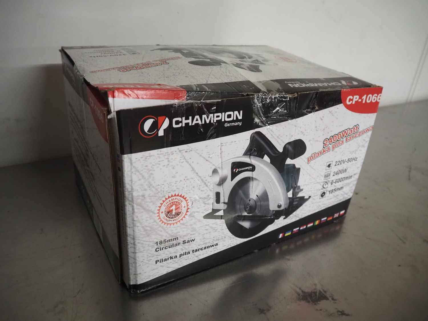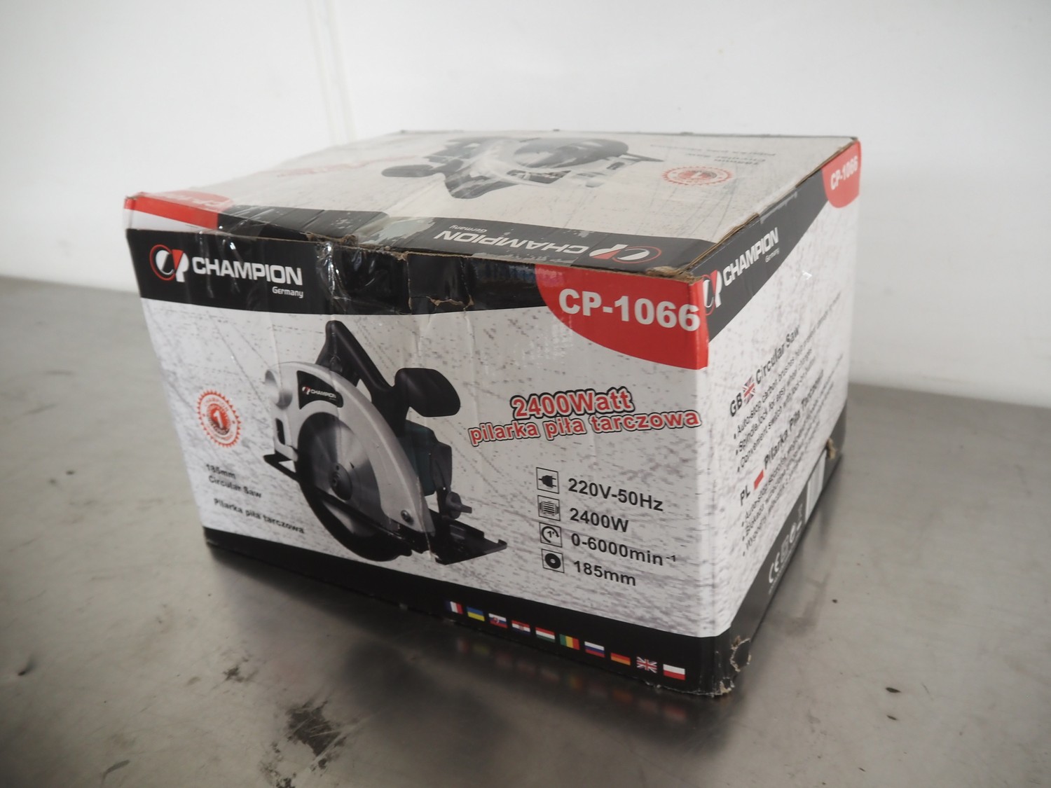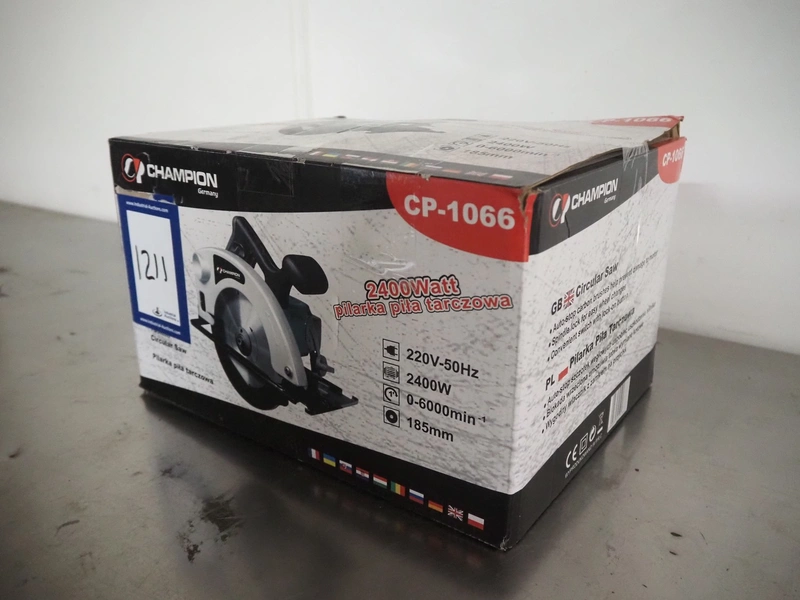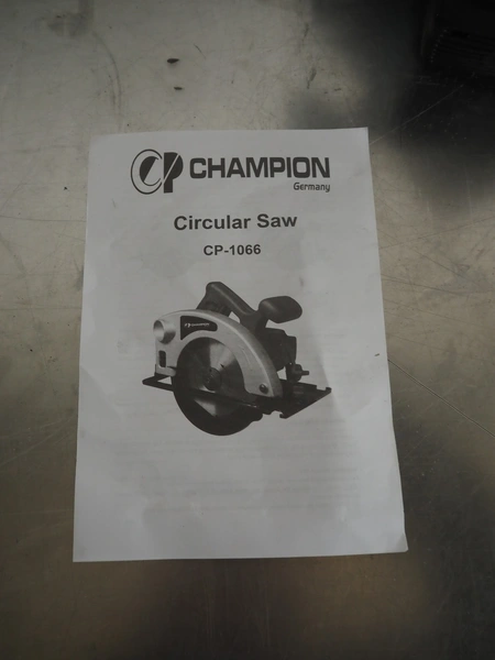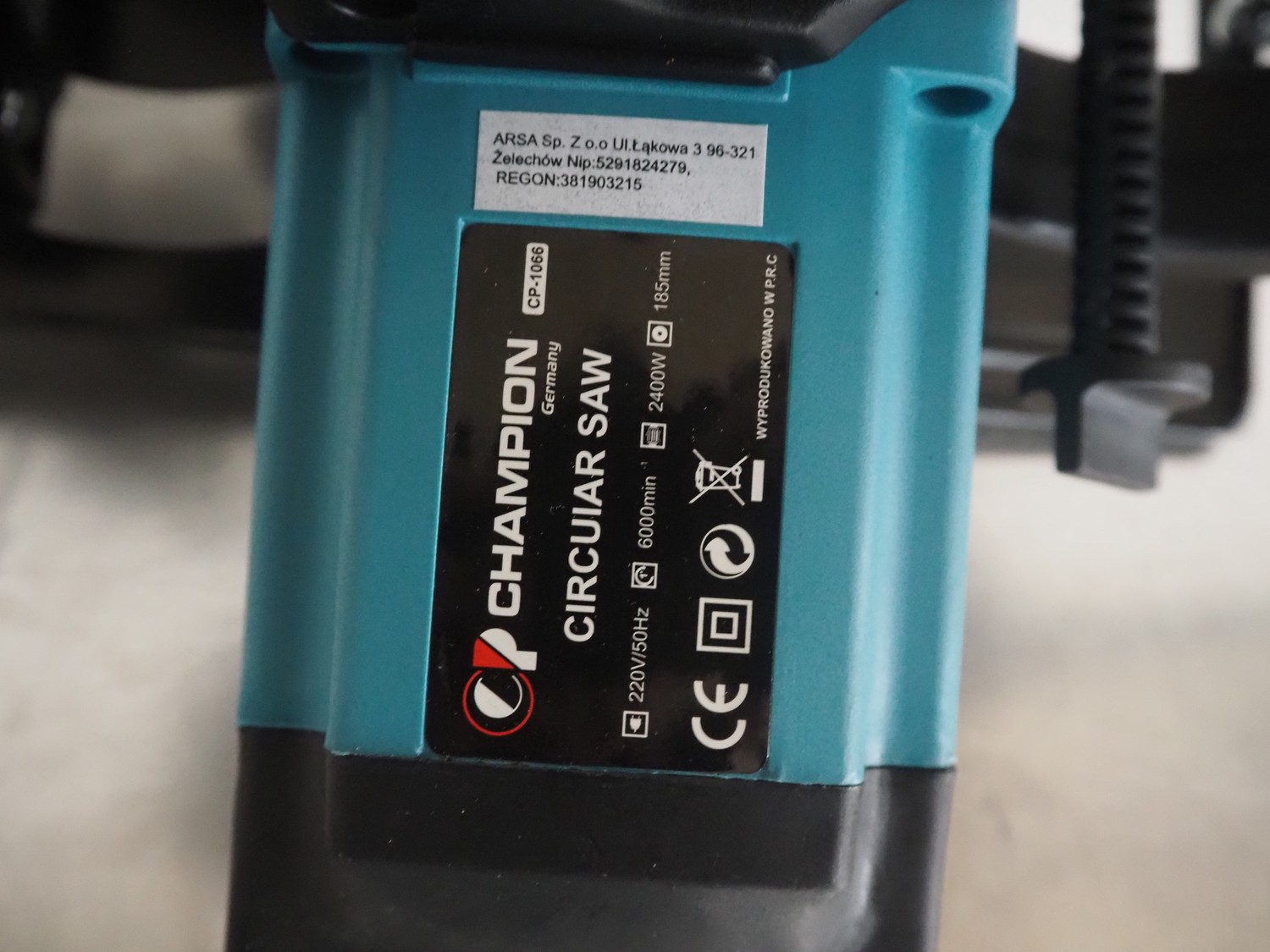 Champion circular saw, model: CP-1066, 220 V, 50 Hz, 2400 W, dimensions: 320 mm x 240 mm x 215 mm.