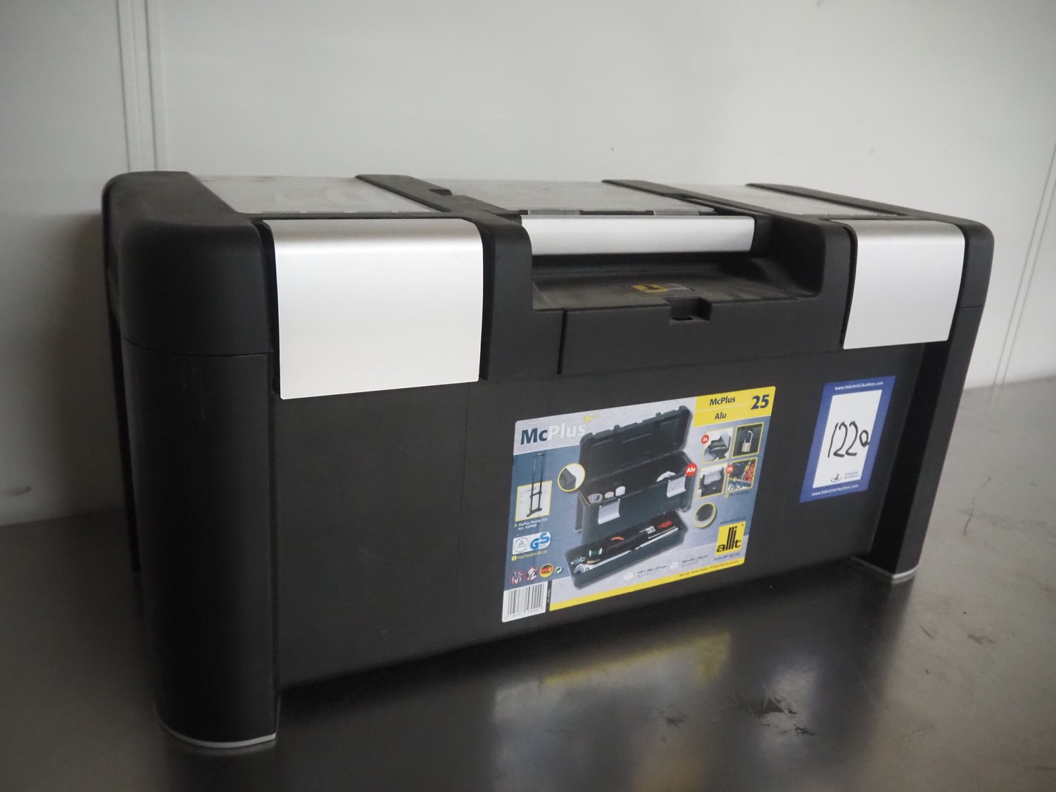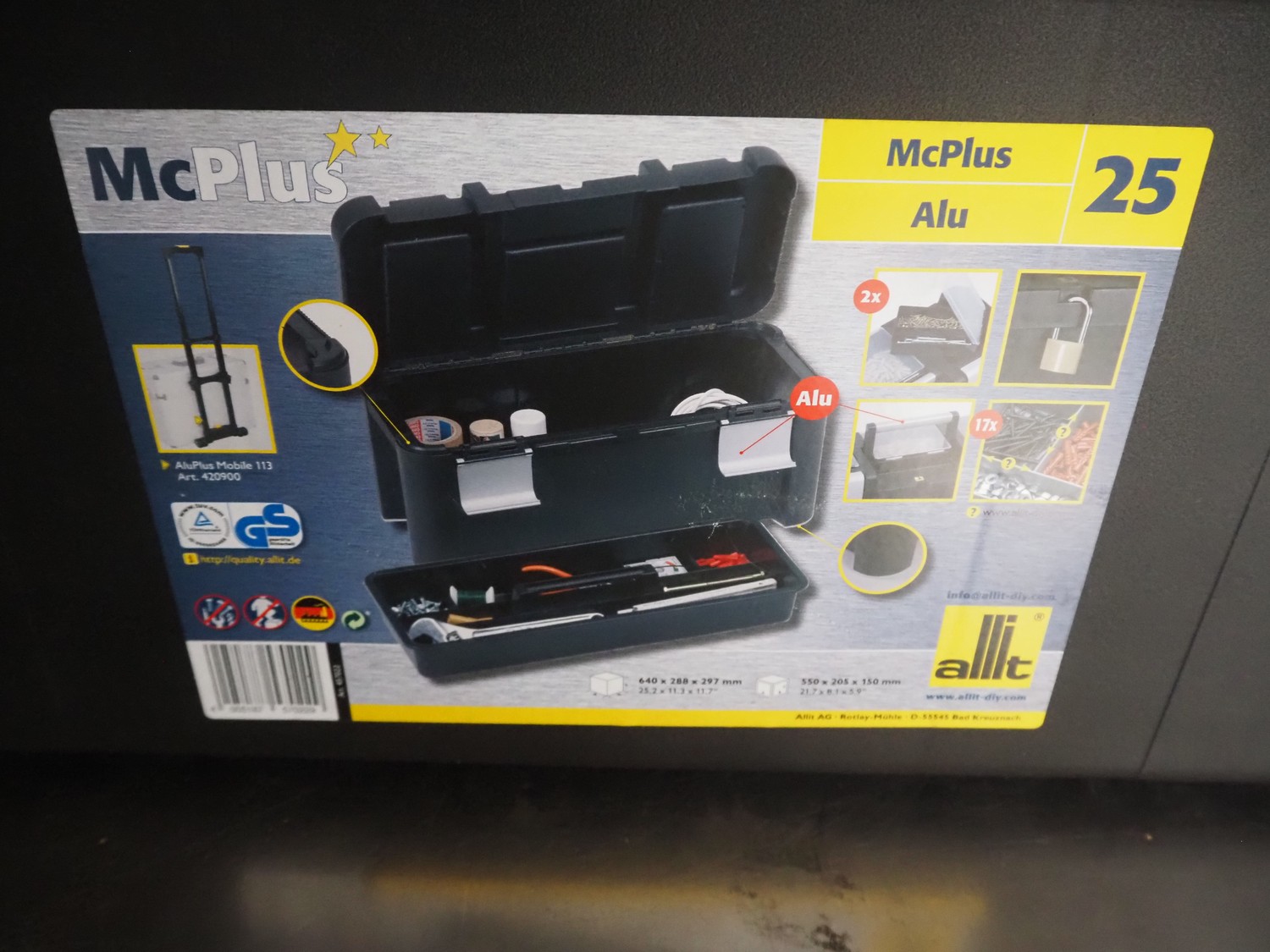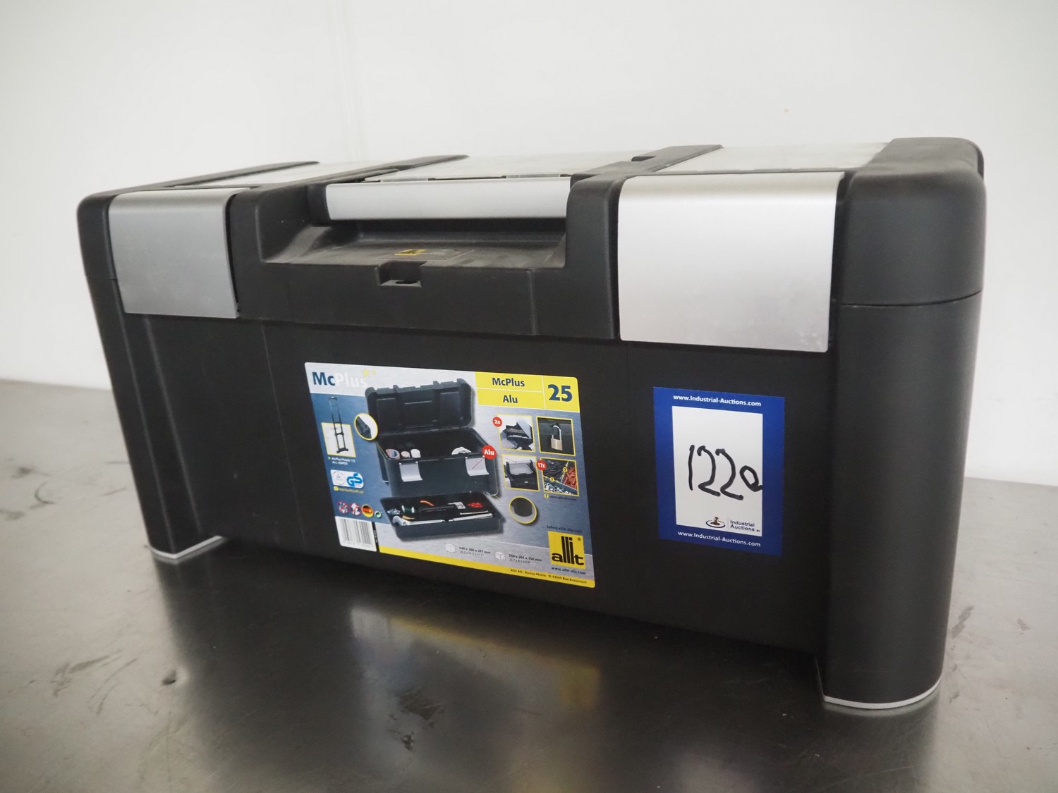 Allit empty plastic tool case, dimensions: 630 mm x 260 mm x 300 mm.