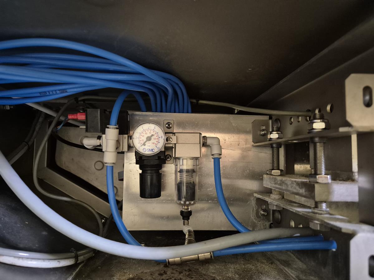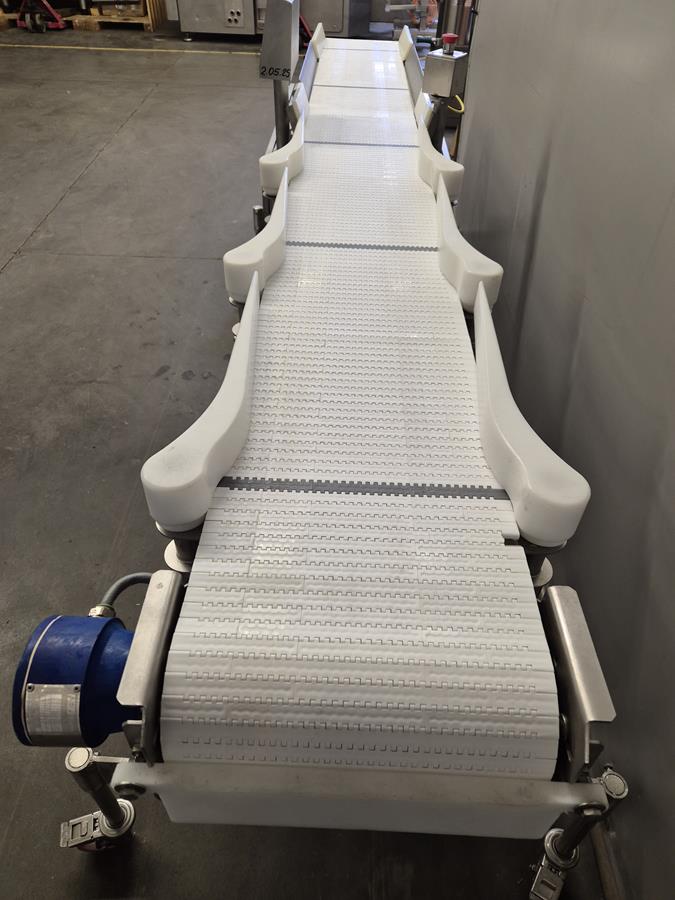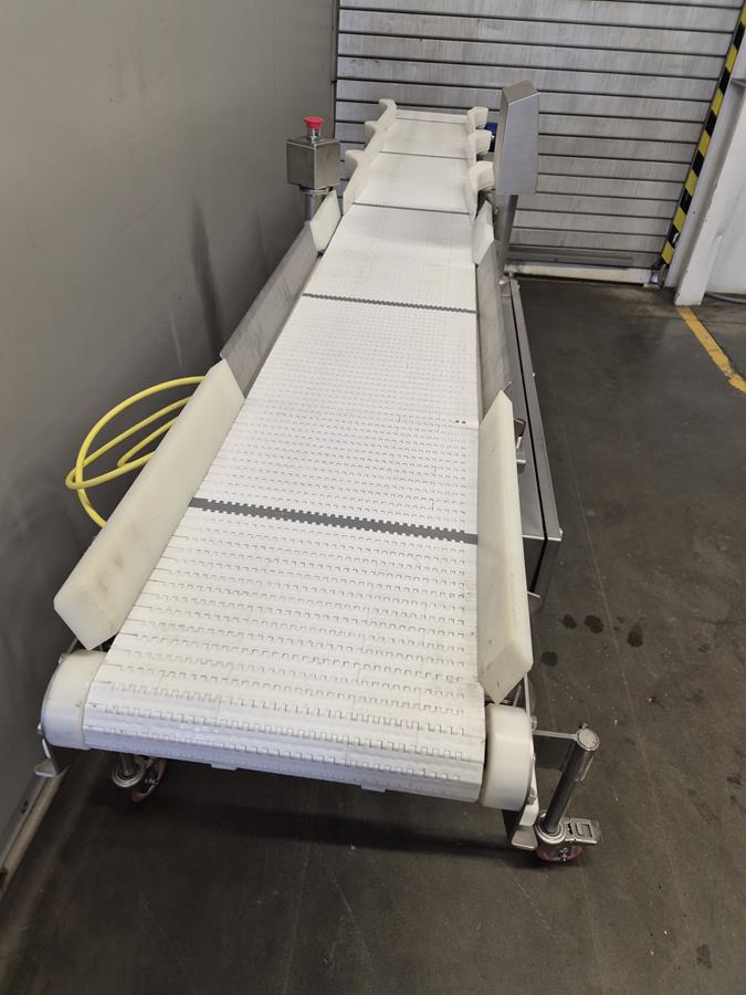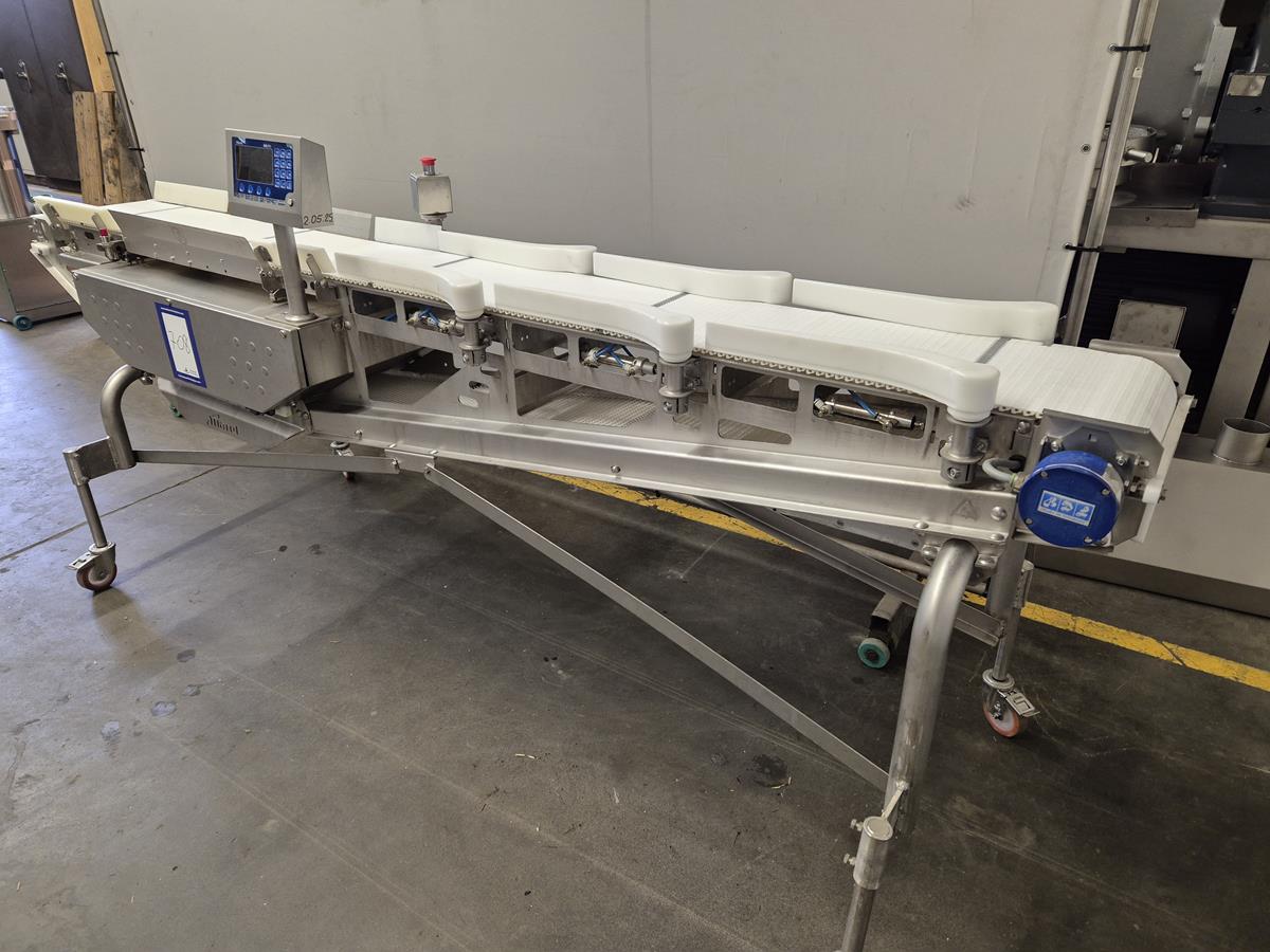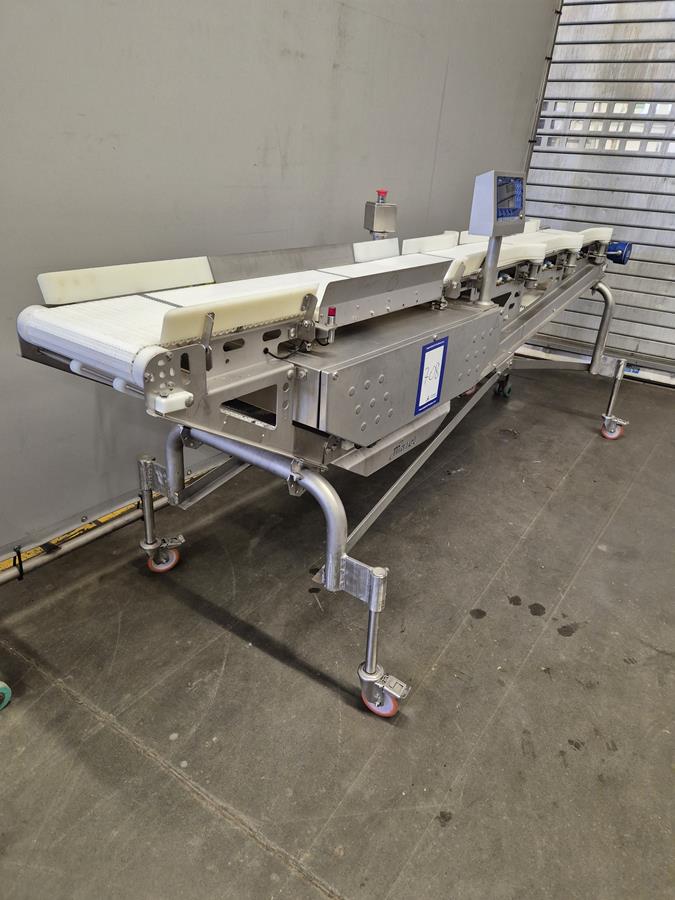 Marel Compact Grader, type: M2200-A01, serial number: A025704, minimum weight: 40/100/200 g, maximum weight: 0.5/1.5/3 kg, plastic belt, total dimensions: 2950 mm x 900 mm x 1300 mm.