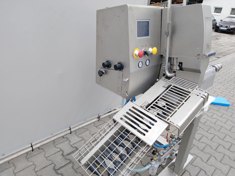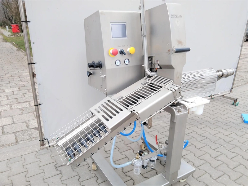 Tipper Tie Alpina GmbH mobile automatic double clipper, type: KDCM-A200, serial number: 4816-577, year of construction: 2014, 230 V, 50 Hz, 1.3 A, 0.3 kW, maximum: 6 bar, weight: 143 kg, dimensions: 1800 mm x 900 mm x 1650 mm.