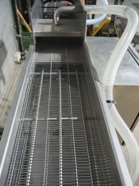 Alco mobile coating machine, type: APN 200 N, serial number: 03404211, year of construction: 2000, 400 V, 0.43 kW, s/s mesh belt, belt width: 200 mm, clearance: 200 mm x 50 mm, total dimensions: 1590 mm x 540 mm x 1170 mm.