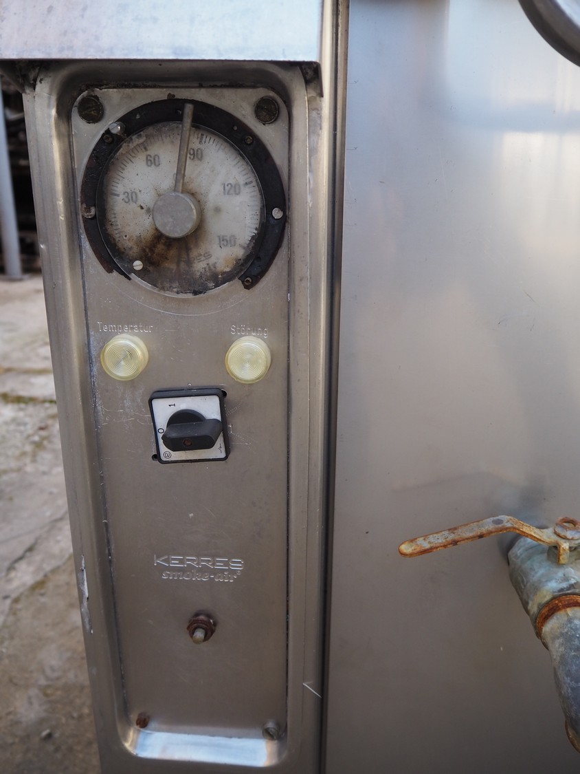 Kerres cooking vessel, gas heated, inside dimensions: 900 mm x 800 mm x 400 mm, total dimensions: 1300 mm x 1150 mm x 1000 mm.