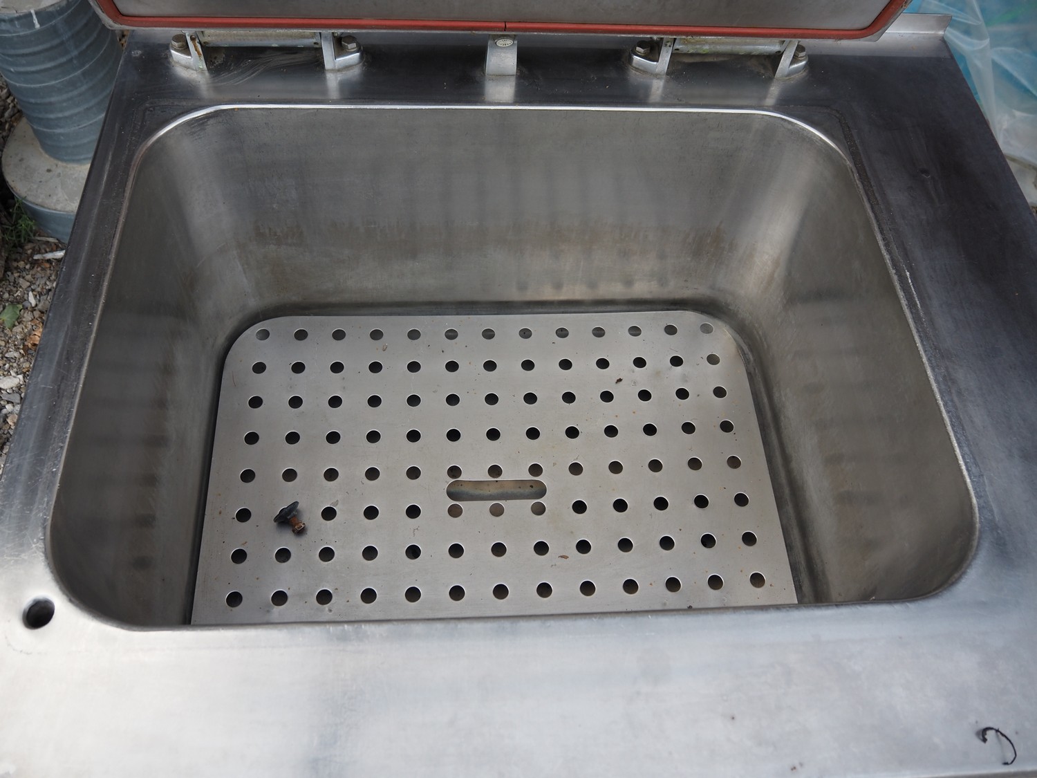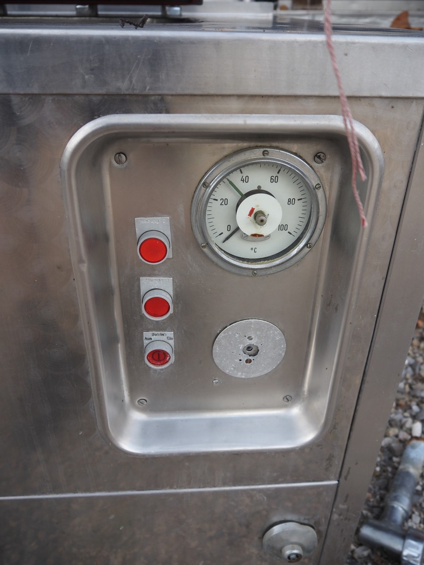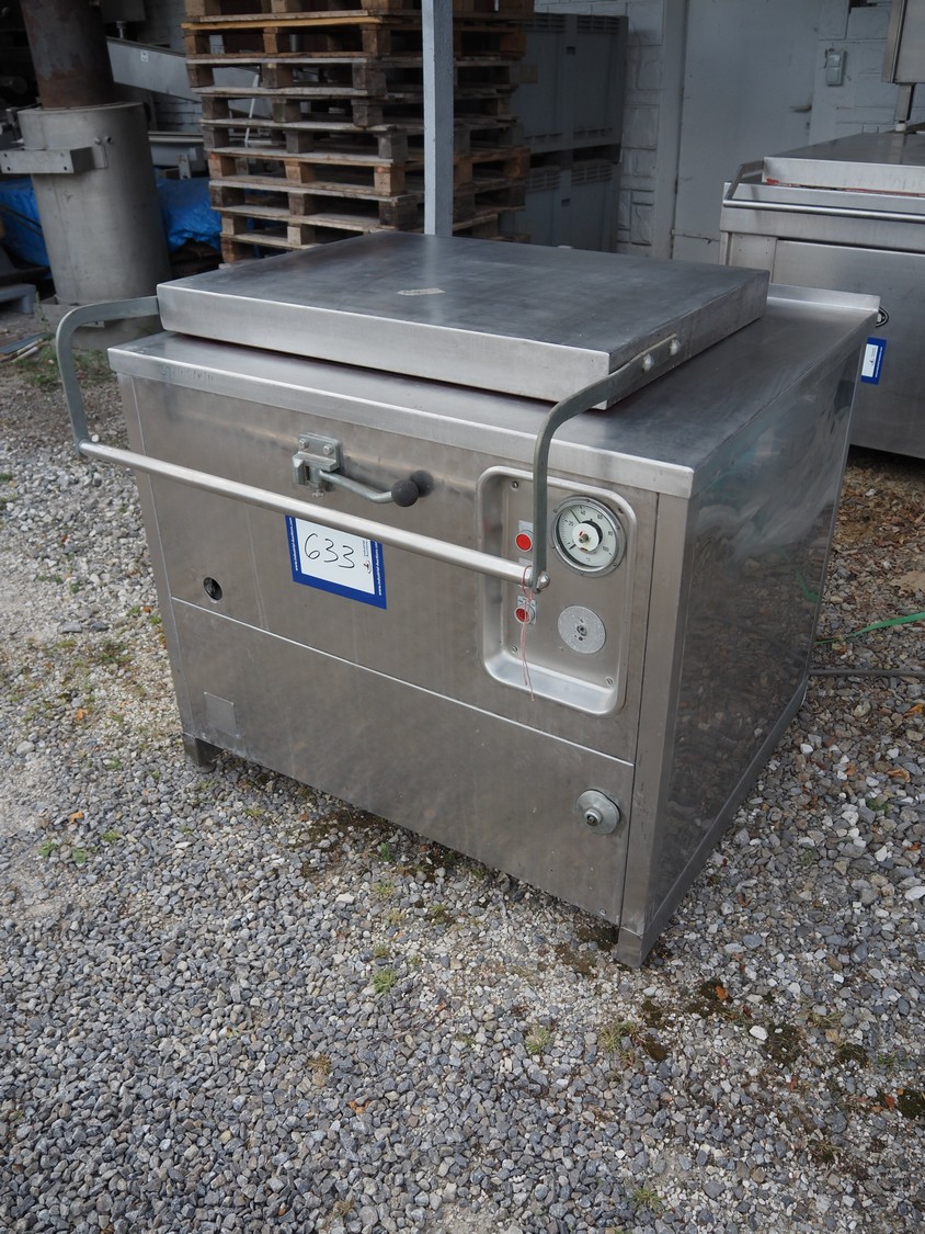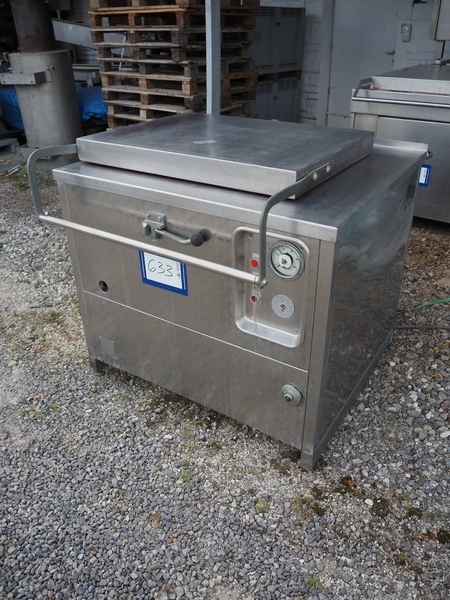 Cooking vessel, inside dimensions: 800 mm x 600 mm x 380 mm, total dimensions: 1060 mm x 1020 mm x 1000 mm.