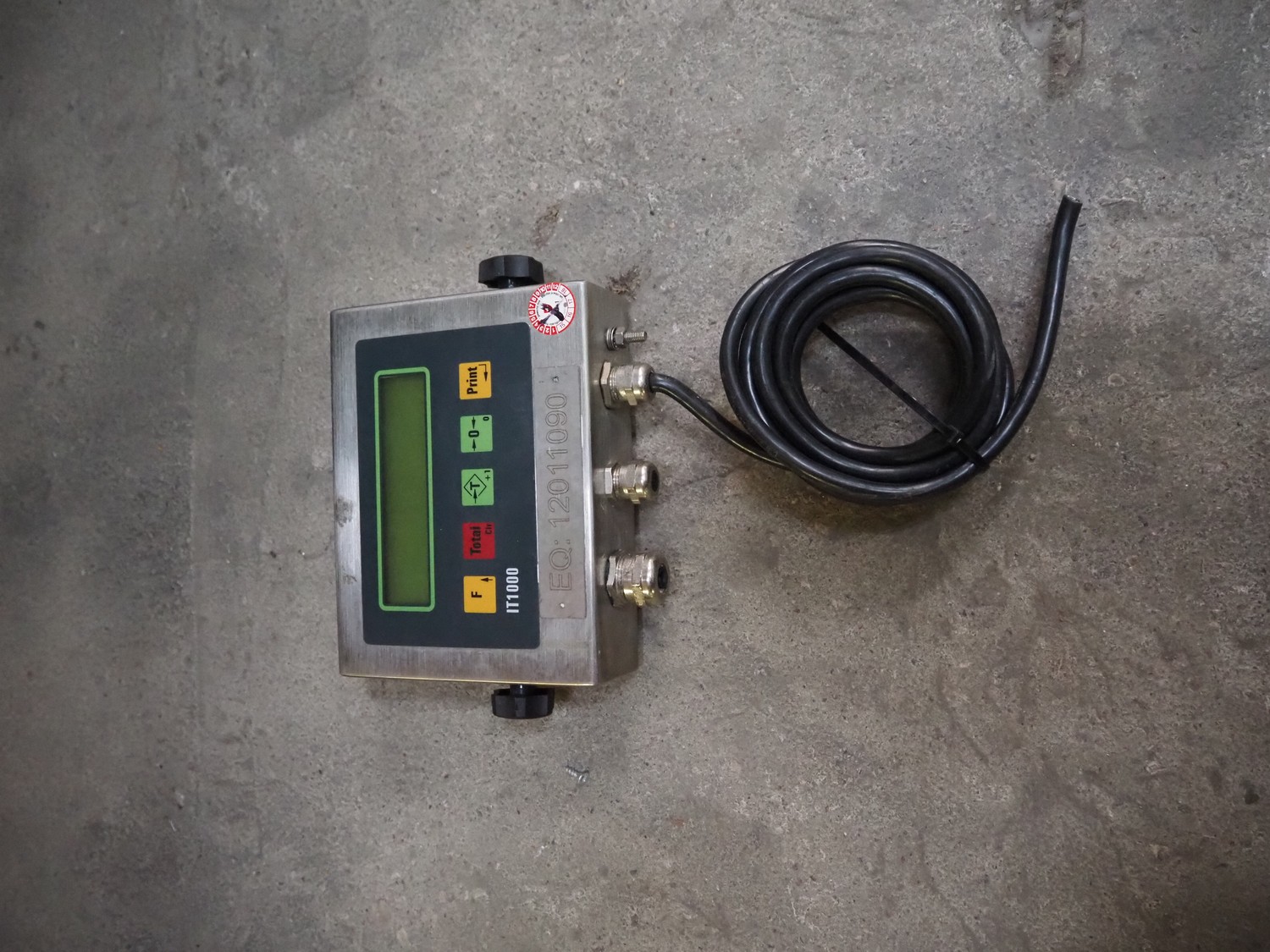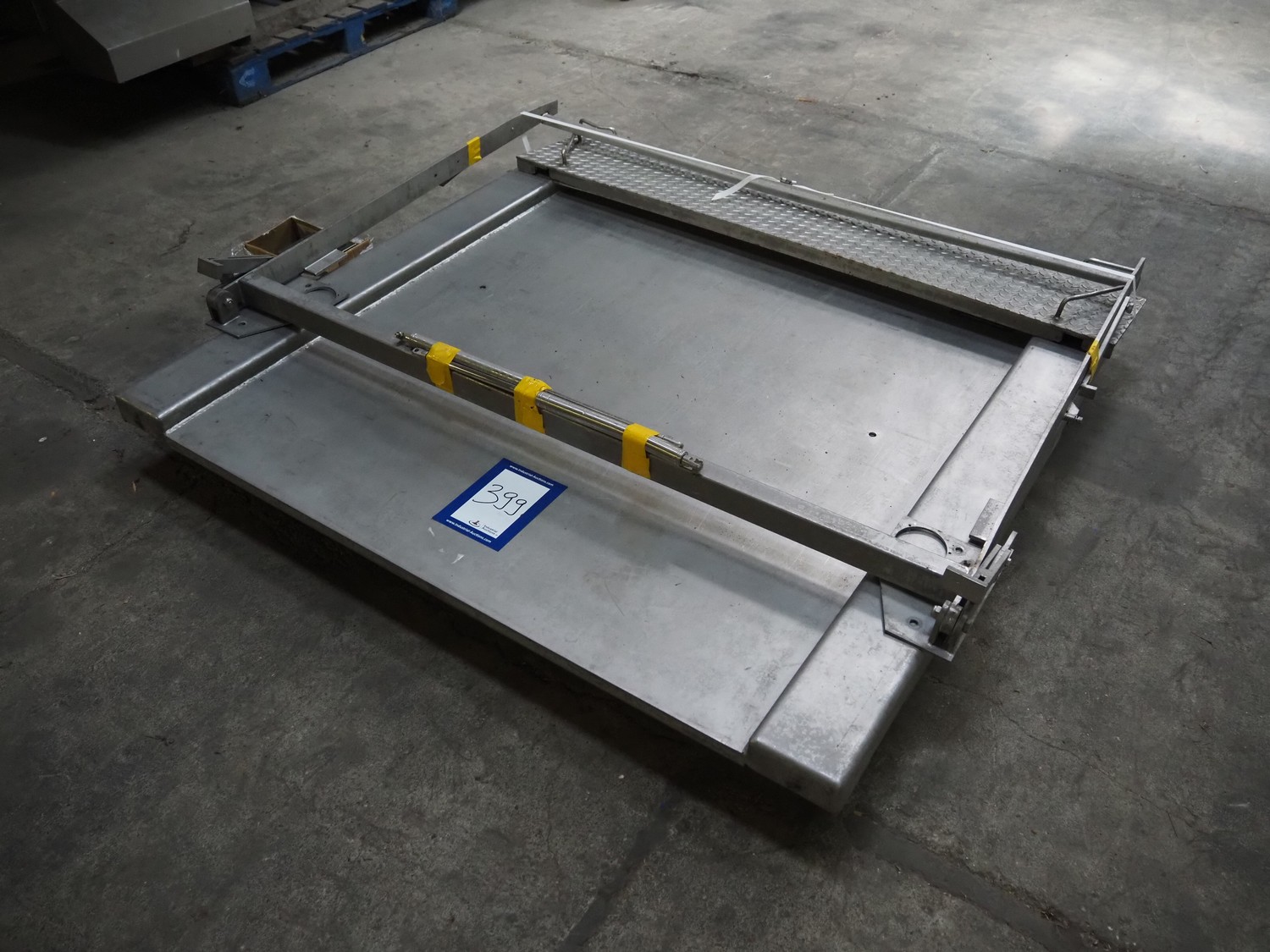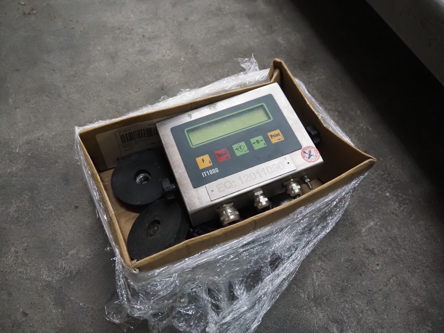 S/s floor weighing scale with Berkel indicator, type indicator: IWS-IT1000, serial number: 042881, year of construction: 2004, 240 V, 50/60 Hz, 0.2 A, max weight: 1500 kg, dimensions weighing scale: 1640 mm x 1500 mm x 340 mm.