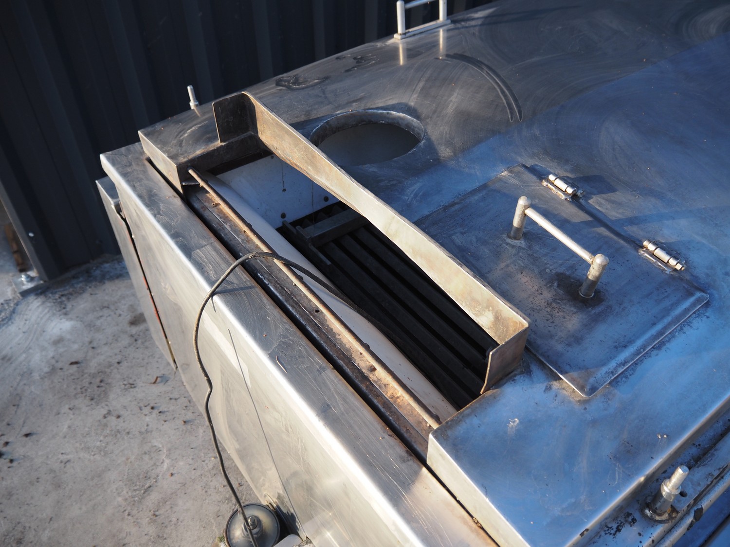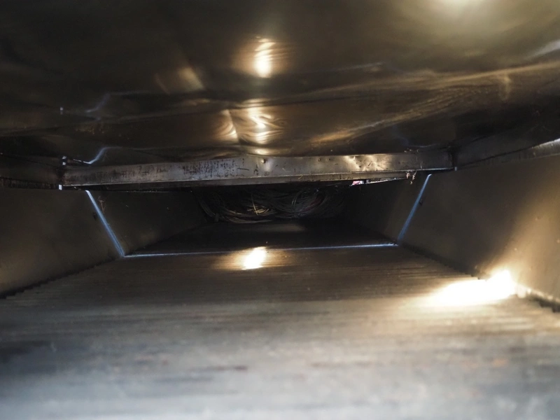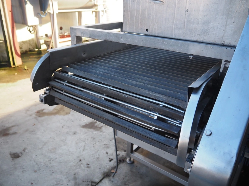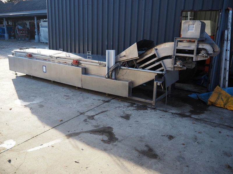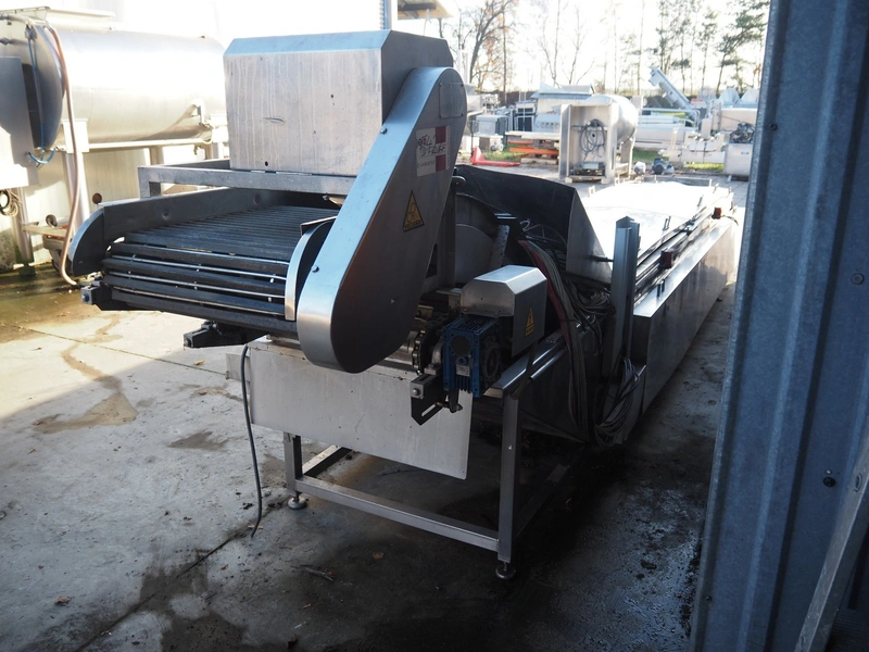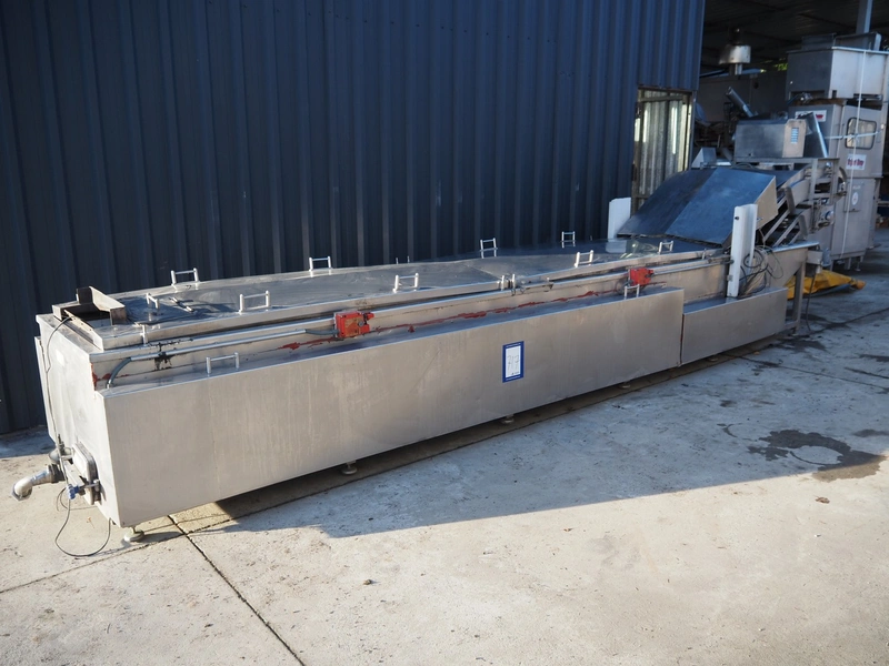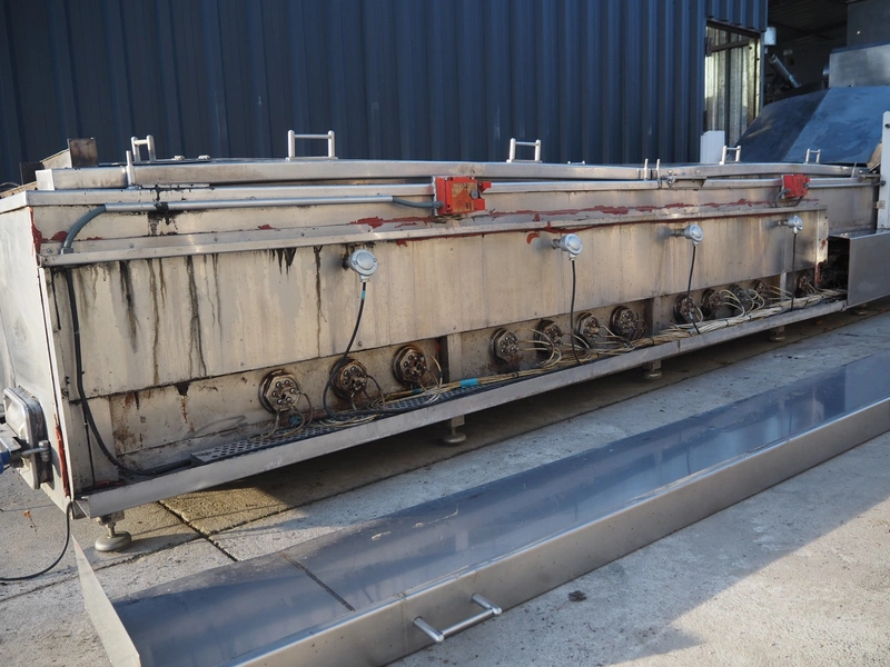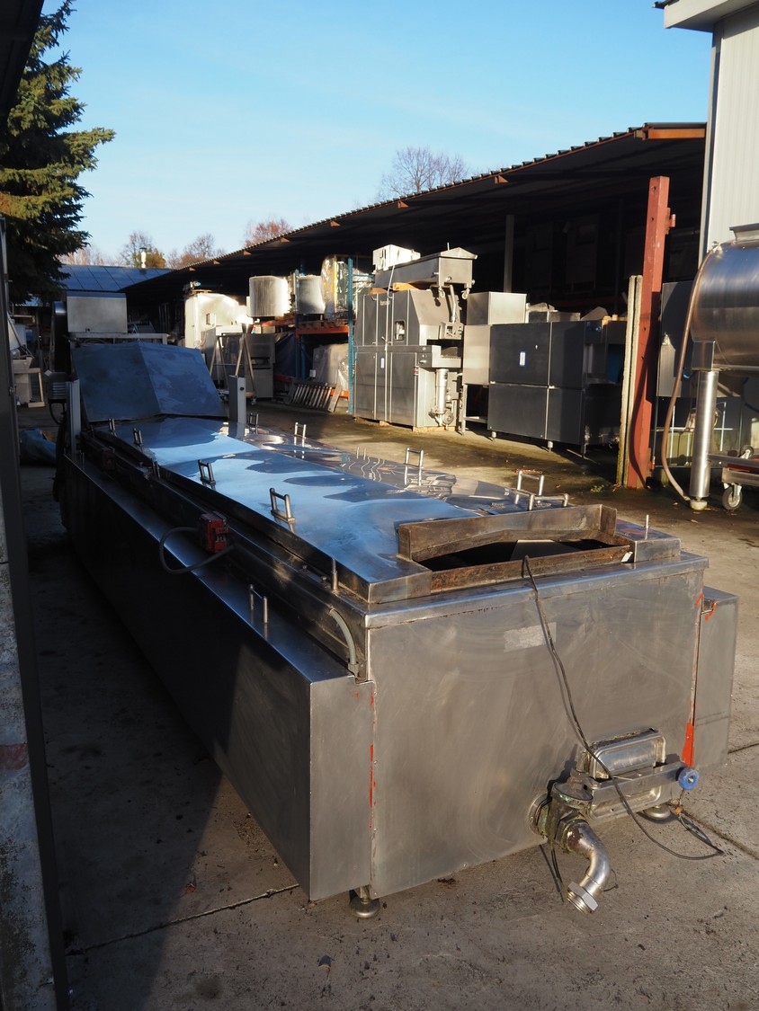 Famaco continuous fryer, model: F, serial number: 1324, year of construction: 2008, steel belt, belt width: 600 mm, total dimensions: 6400 mm x 1250 mm x 1700 mm.