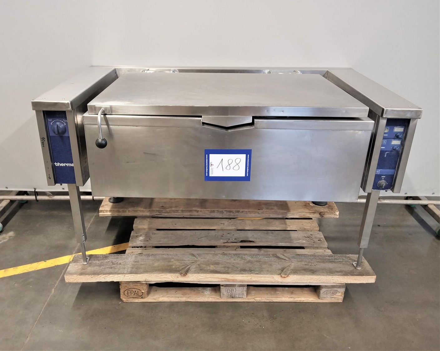 Therma tiltable roasting pan, electric heated, inside dimensions: 1065 mm x 685 mm x 200 mm, total dimensions: 1600 mm x 1080 mm x 900 mm.
