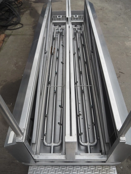 S/s boot cleaner, 2 lanes, lane length: 2000 mm, total dimensions: 2700 mm x 750 mm x 1200 mm.
