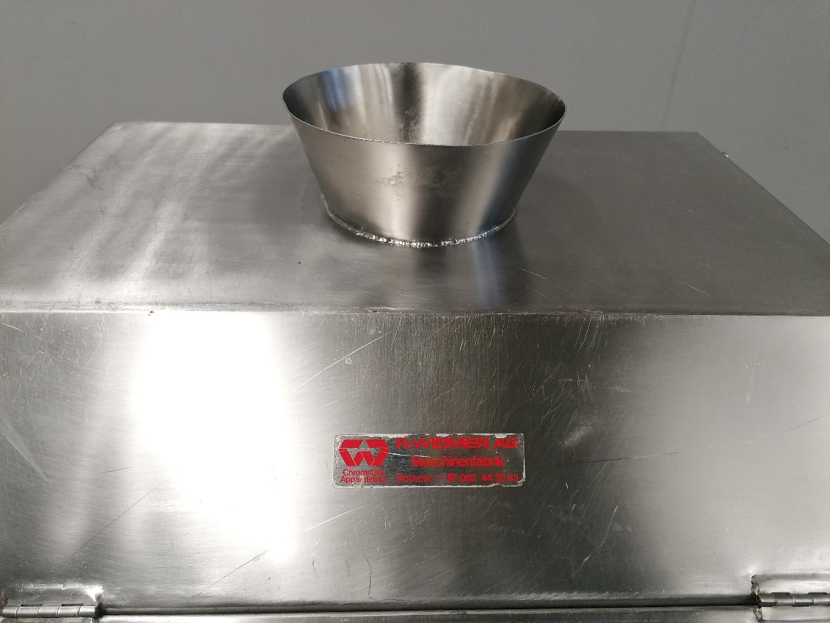R. Widmer AG mobile s/s ice storage tank, inside dimensions: 690 mm x 700 mm x 700 mm, total dimensions: 760 mm x 750 mm x 1300 mm.