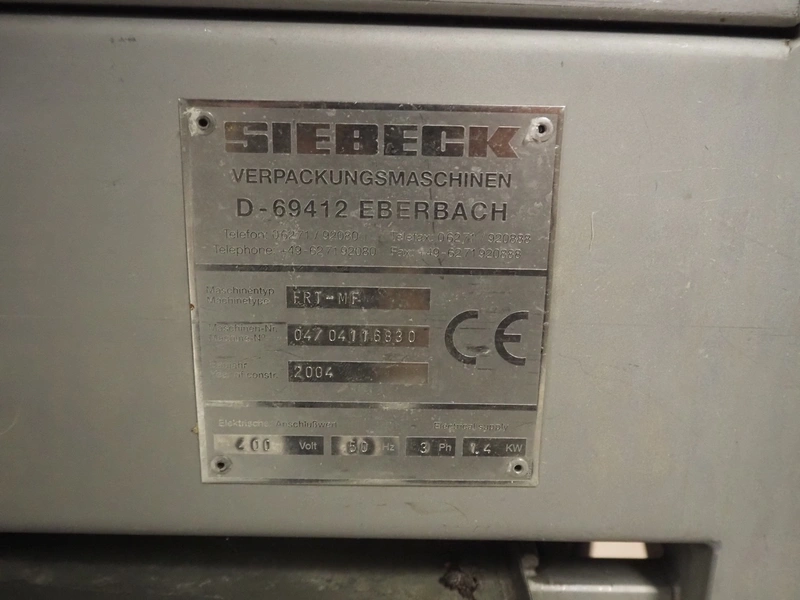 Siebeck mobile binding machine, type: FRT-MF, machine number: 04/04116830, year of construction: 2004, 400 V, 3 Ph, 50 Hz, 1.4 kW, clearance: 280 mm x 230 mm, total dimensions: 740 mm x 620 mm x 1370 mm.