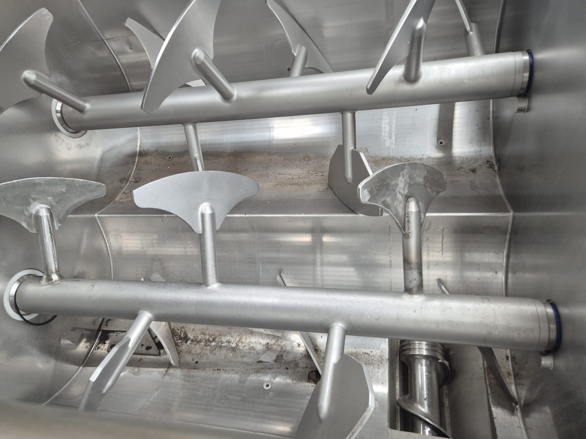 CFS Slagelse A/S double shaft mixer-grinder with nitrogen injection, type: Combigrind-1500, machine number: 5000064591, year of construction: 2005, 400 V, 50 Hz, 143 A, 77 kW, plate diameter: 200 mm, total dimensions: 2300 mm x 2050 mm x 2700 mm.