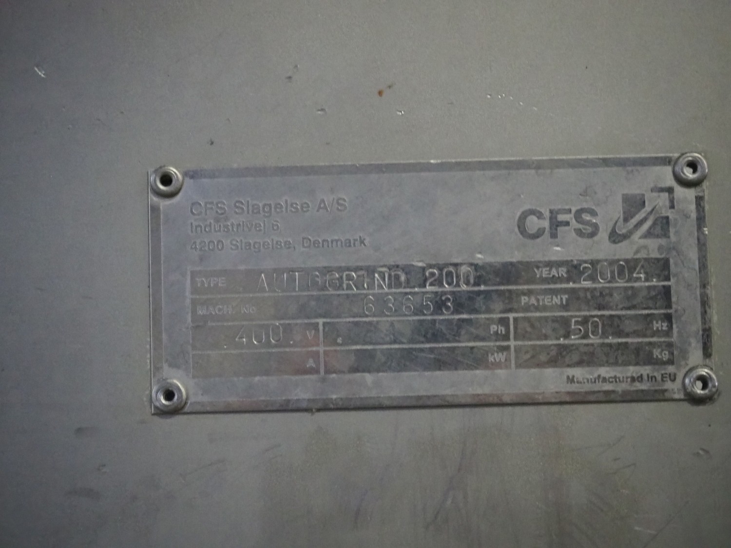 CFS grinder, type: Autogrind 200, machine number: 63653, year of construction: 2004, 400 V, 50 Hz, plate diameter: 200 mm, total dimensions: 2500 mm x 1150 mm x 1800 mm.