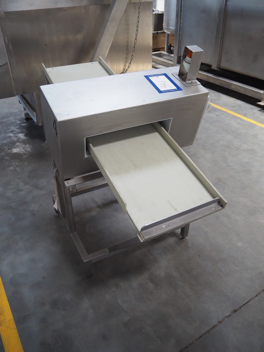 Boekels metal detector, year of construction: 1999, 230 V, 50/60 Hz, aproximate belt width: 400 mm, clearance: 410 mm x 100 mm, elevating height: 1000 mm, total dimensions: 1550 mm x 950 mm x 1250 mm. Without belt.
