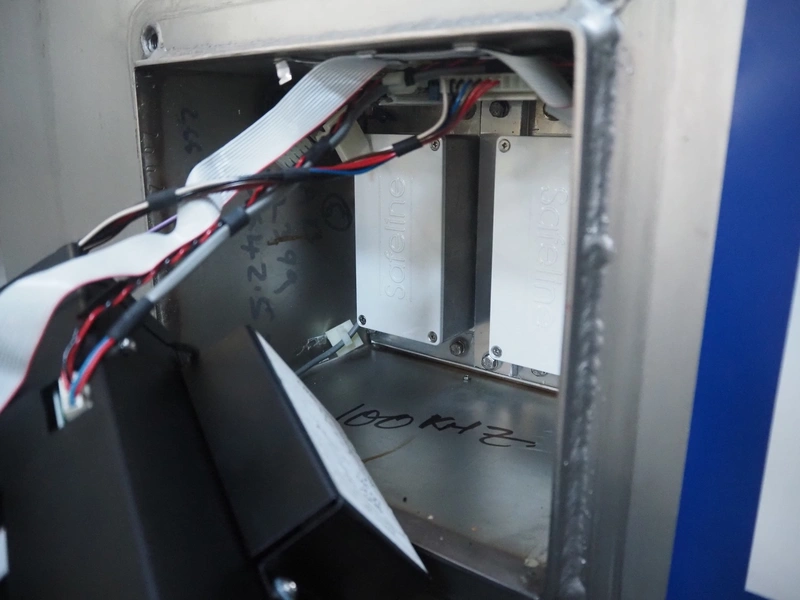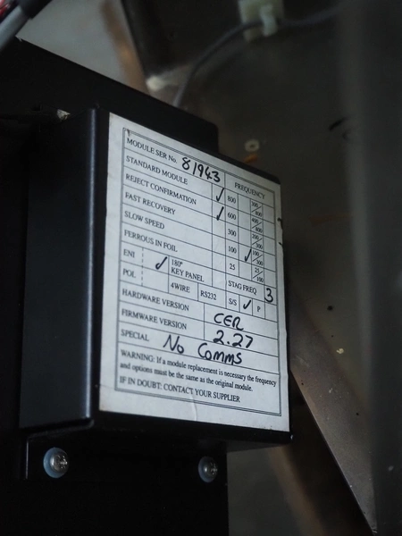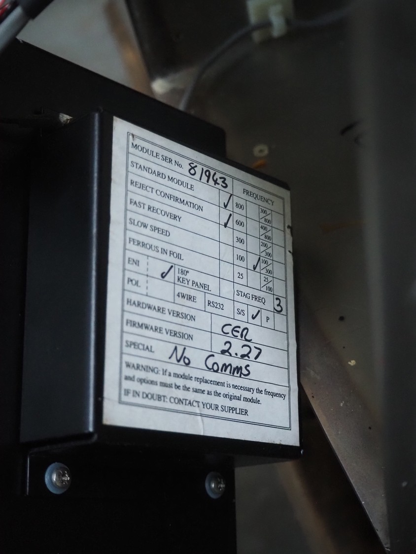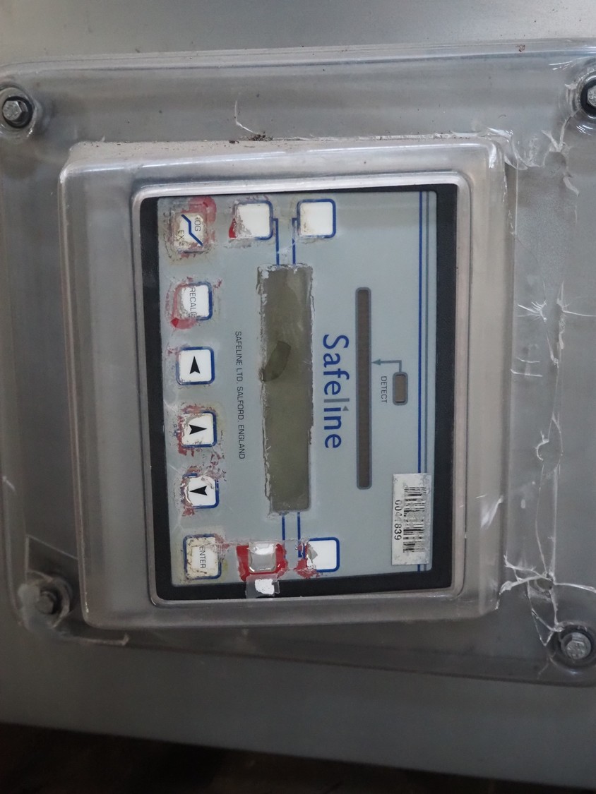 Safeline metal detector head, serial number: 81943, clearance: 755 mm x 431 mm, total dimensions: 1200 mm x 800 mm x 420 mm.
