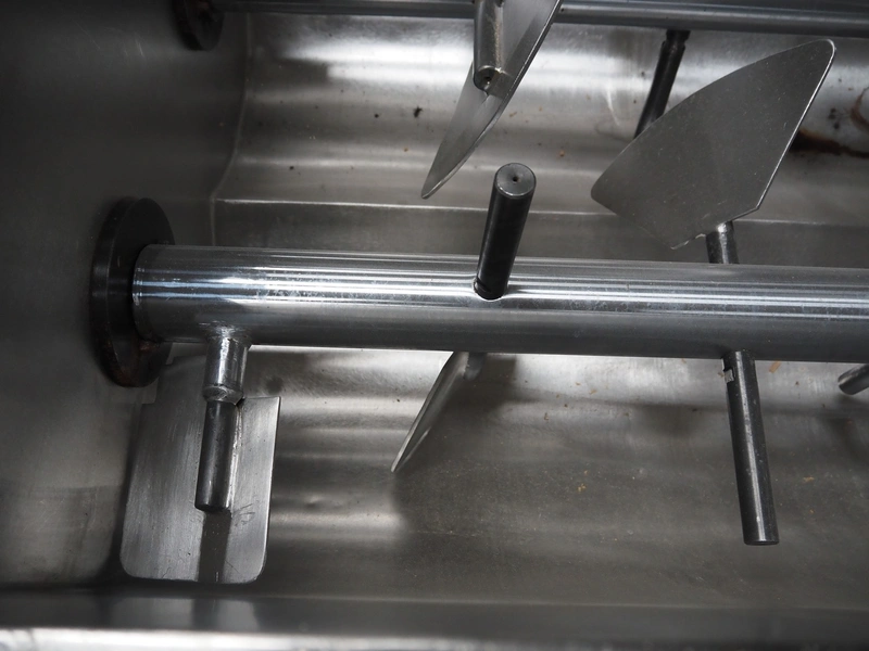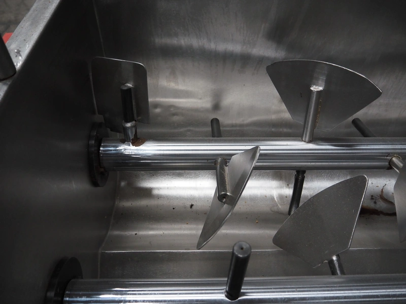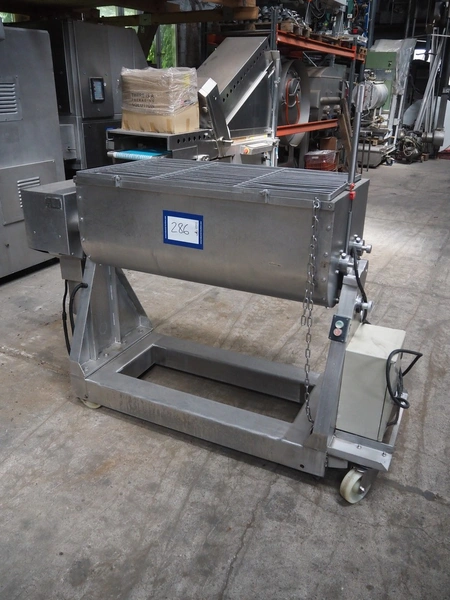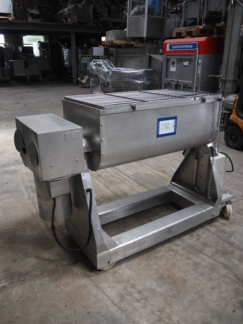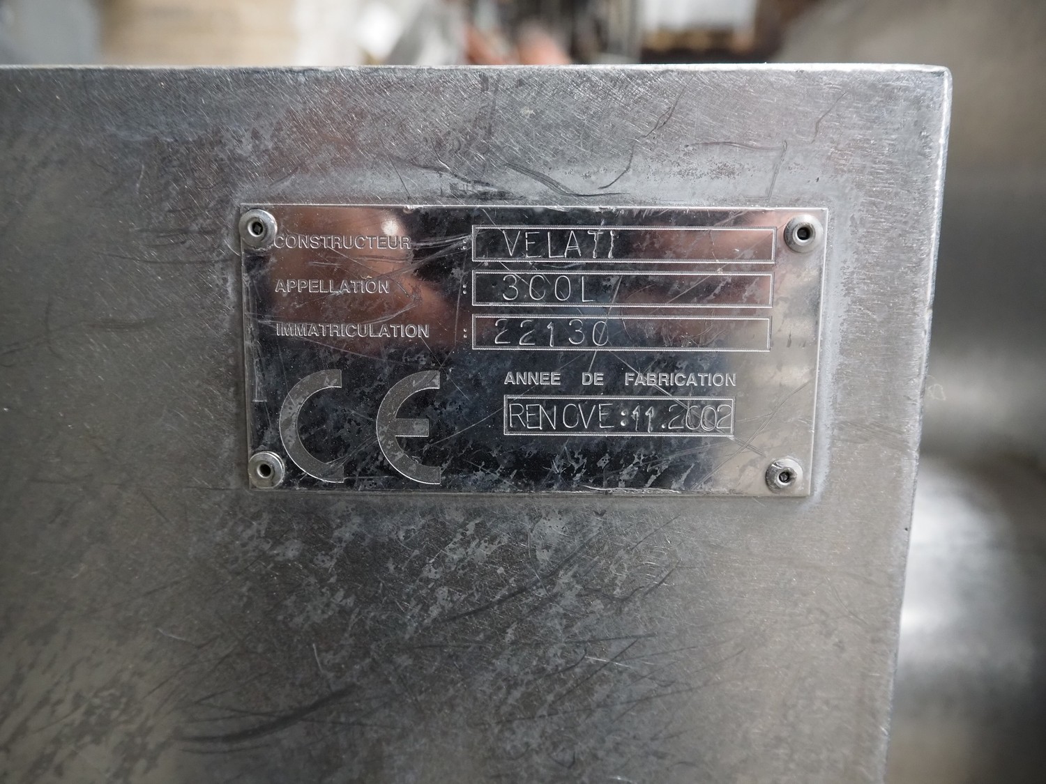 Velati mobile double shaft paddle mixer, number: 22130, year of construction: 11. 2002, volume: 300 liter, total dimensions: 1950 mm x 650 mm x 1650 mm.