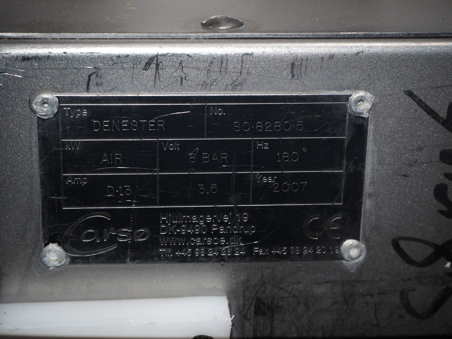 - Carso tray denester, type: DENESTER, number: SO-82805, year of construction: 2007, plastic mesh belt with dividers, belt width: 250 mm, total dimensions denester: 2050 mm x 700 mm x 2200 mm.