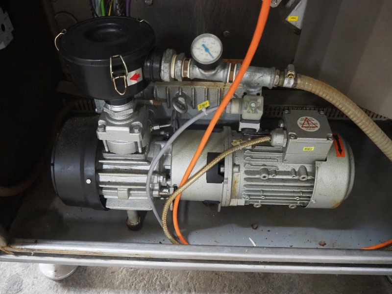 Maja portion control slicer, type: FP100, number: 45949, year of construction: 2006, 400 V, 50 Hz, Busch vacuum pump, number: 060062236, capacity: 160 m³ per hour, dimensions: 1900 mm x 1100 mm x 2000 mm. Including s/s trolley with moulds.