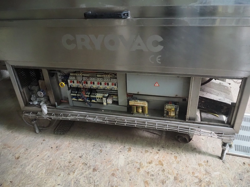 Cryovac shrink tunnel, model: CJ 51T RH, serial number: A91200216, year of construction: 1997, 400 V, 50 Hz, 23 A, 15 kW, clearance: 260 mm x 120 mm, total dimensions: 2100 mm x 900 mm x 1400 mm.