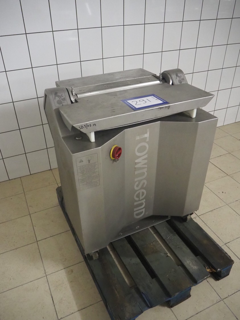 Townsend mobile skinning machine, model: 7620, serial number: 157, year of construction: 1994, 380 V, 3 Ph, 50 Hz, 2.0 A, working width: 510 mm, total dimensions: 900 mm x 550 mm x 980 mm.