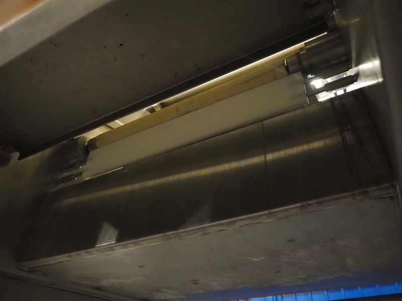Maja mobile skinning and derinding machine, type: VBA 5550, machine number: 43905, year of construction: 2002, 400 V, 3 Ph, 50 Hz, 1.1 A, 2.8 kW, plastic belt, belt width: 510 mm, working width: 500 mm, total dimensions: 1900 mm x 1000 mm x 1300 mm.