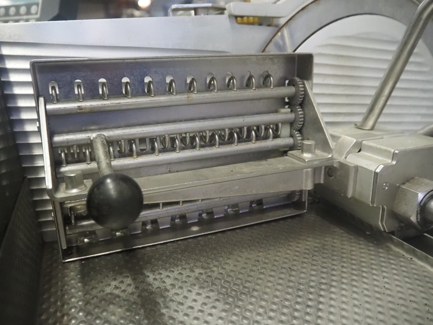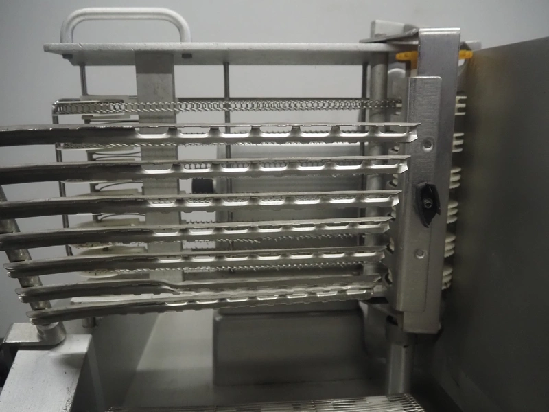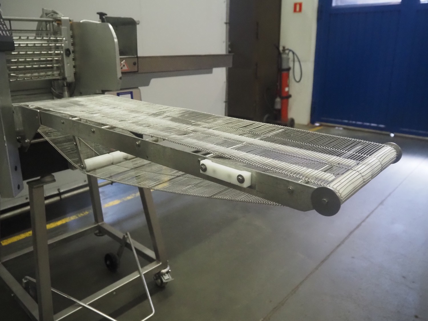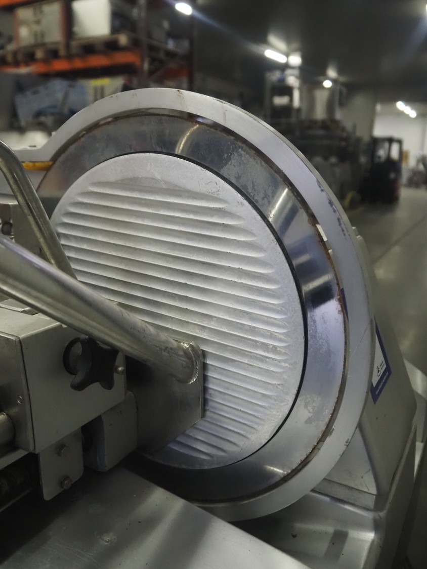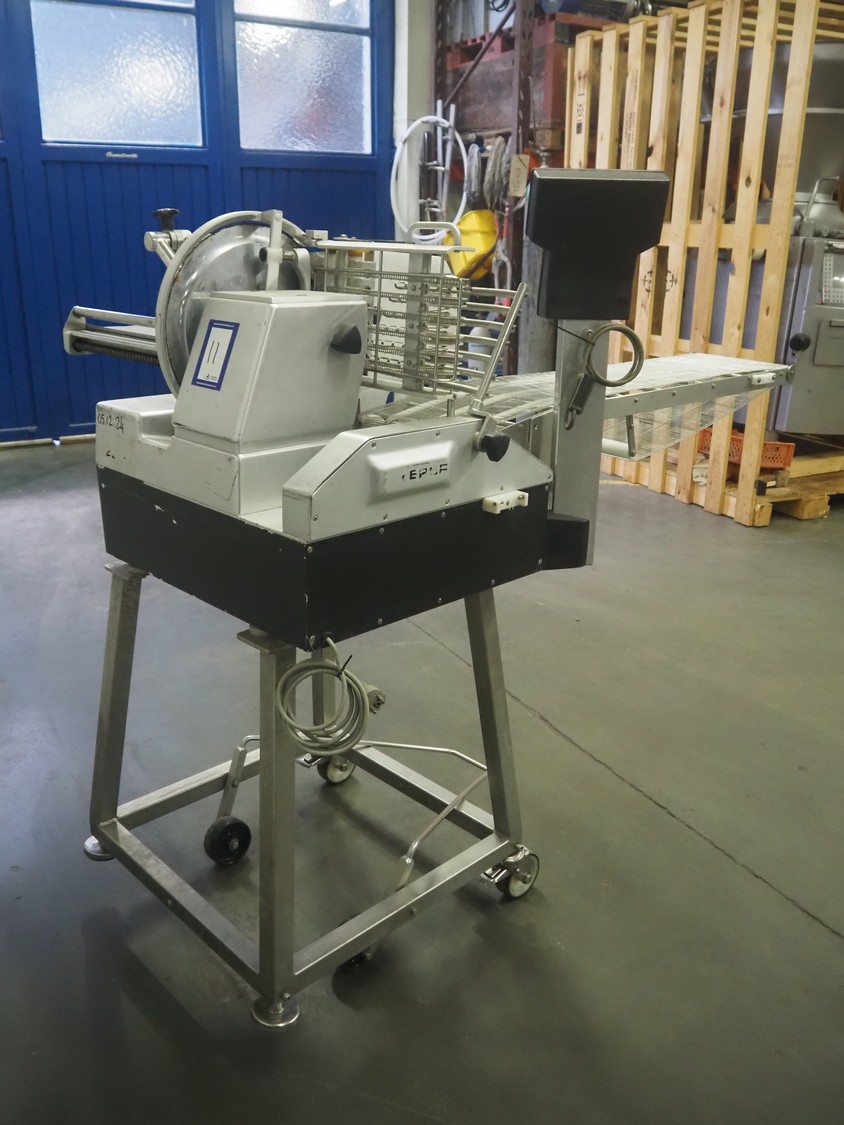 Bizerba mobile automatic slicer, type: A 406 FB, number: 2194205, year of construction: 2004, 230 V, 1 Ph, 50 Hz, 3.1 A, dimensions: 1200 mm x 740 mm x 1380 mm.