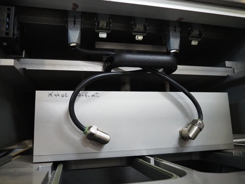 Inauen Maschinen AG mobile traysealer, type: VC999/TS 400, 400 V, 3 Ph, 50 Hz, 5 kW, 6 bar, dye: (2x) 215 mm x 130 mm, Rietschle vacuum pump, type: VCAH 100 (75), capacity: 100 m³ per hour, total dimensions: 1300 mm x 1000 mm x 1500 mm.