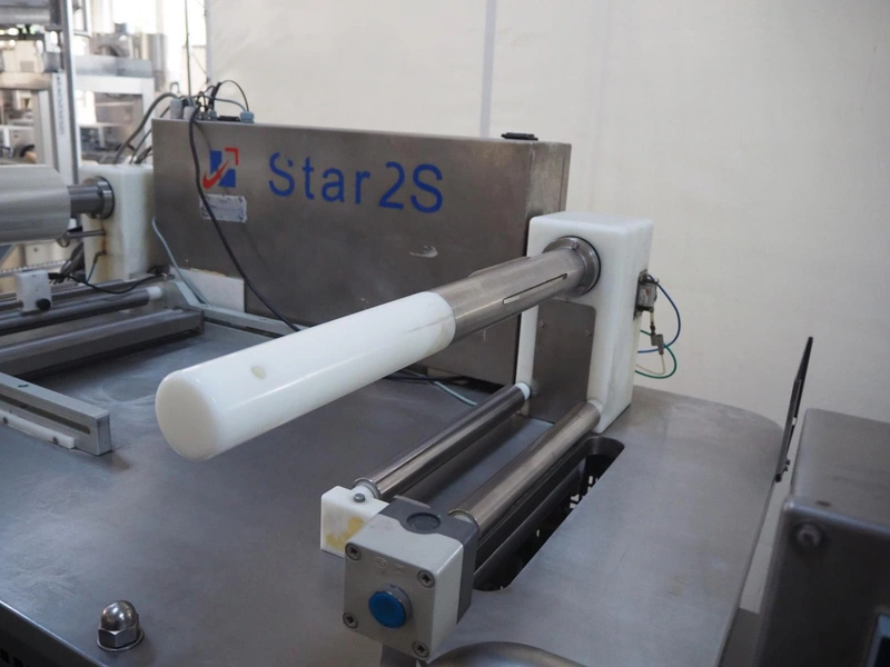 - CFS traysealer, type: STAR2S, number: 695-113C, year of construction: 2005, 400 V, 3 Ph, 50 Hz, 14.5 A, 10 kW, weight: 1500 kg, infeed belt width: 150 mm, film width: 260 mm, dimensions dyes: (3x) 145 mm x 110 mm, total dimensions traysealer: 3800 mm x 1100 mm x 1850 mm.