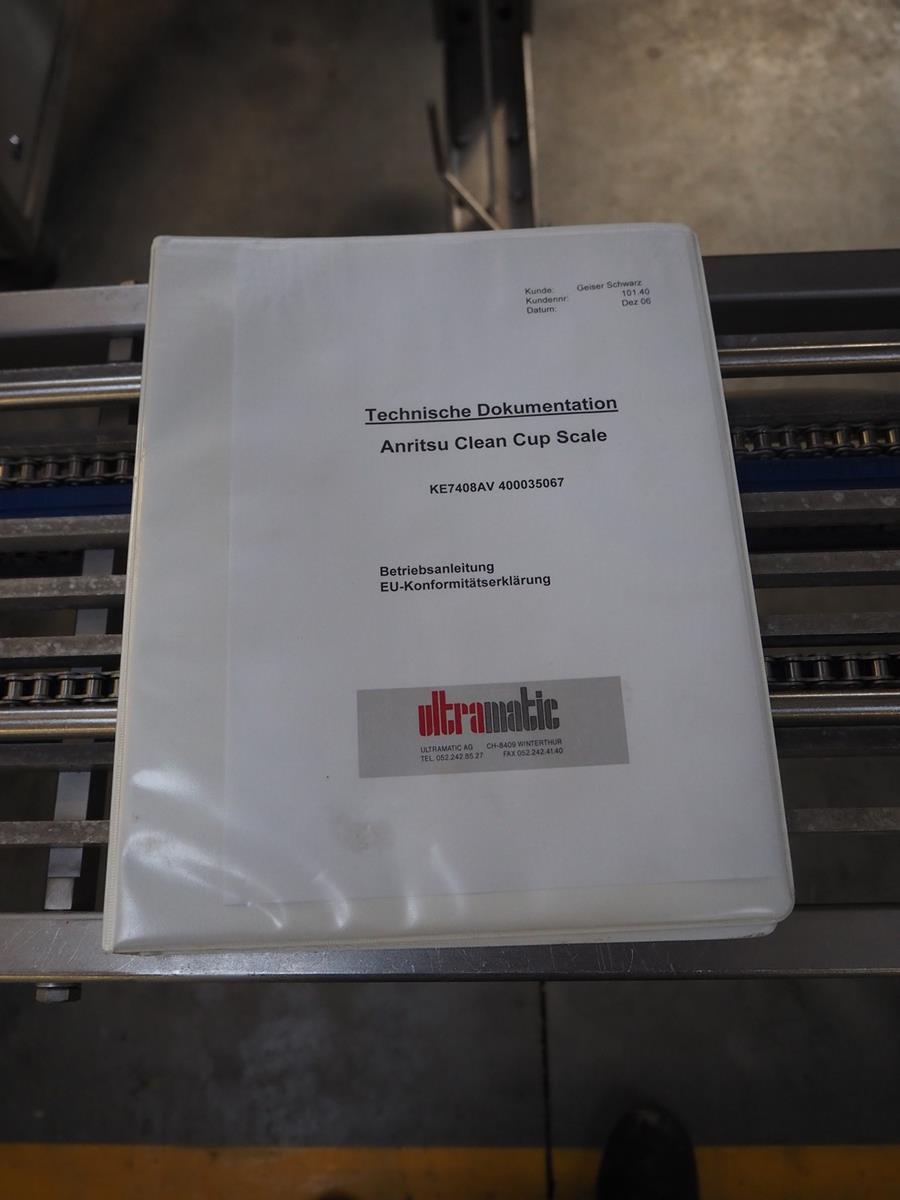 - Anritsu 8 heads linear weigher with platform, type: KE7408AW, serial number: 460035067, year of construction: 2006, 200-240 VAC, 50/60 Hz, d= 0.1 g, capacity: 1-1000 g, maximum speed: 40 pieces per minute, s/s gutter, gutter width: 85 mm, total dimensions linear weigher: 2280 mm x 1880 mm x 2550 mm.