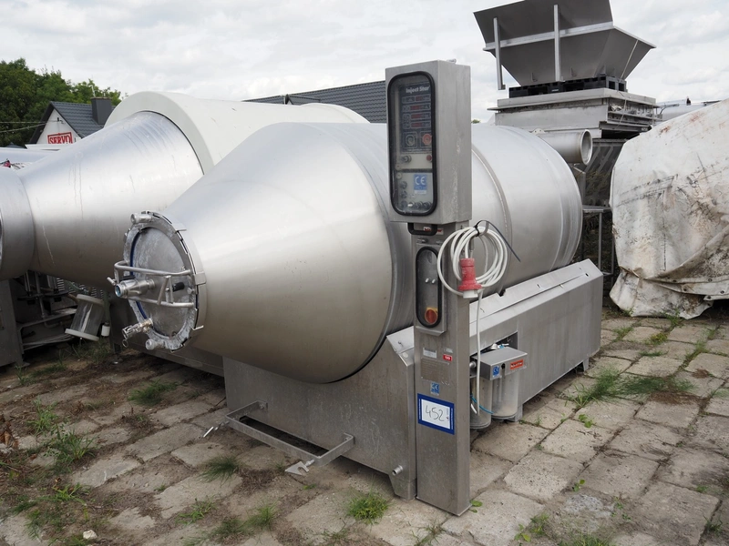 Inject Star / Pökelmaschinen Ges.m.b.H. vacuum tumbler, type: ES-3300-, number: 330, year of construction: 2000, 400 V, 3 Ph, 50 Hz, 6.4 kW, dimensions: 1620 mm x 3100 mm x 1930 mm. Missing vacuum pump.