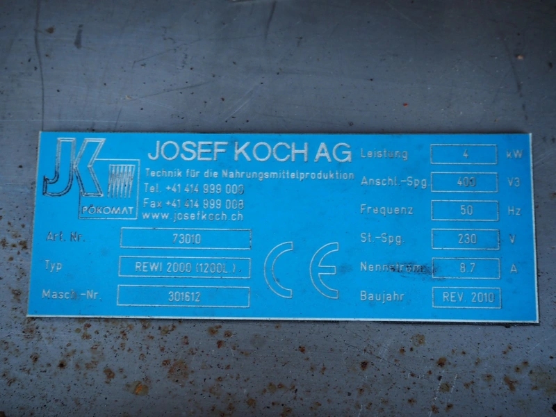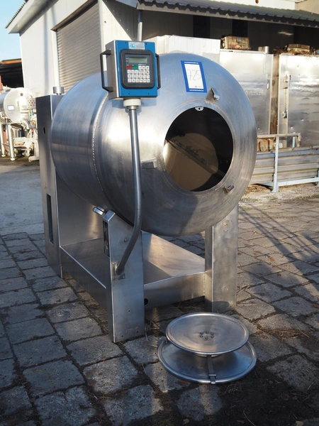 Rewi vacuum tumbler, type: Rewi 2000 (1200L), machine number: 301612, 400 V, 3 Ph, 50 Hz, 8.7 A, 4 kW, dimensions: 2150 mm x 1200 mm x 1900 mm. Technical condition unknown.