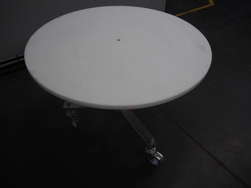 IFP packaging mobile turning table, type: TAV. GIR. D.1200, serial number: 4273, year of construction: 2014, 400 V, 50 Hz, 0.8 A, 0.18 kW, maximum 60 kg, dimensions: Ø 1200 mm x 880 mm.