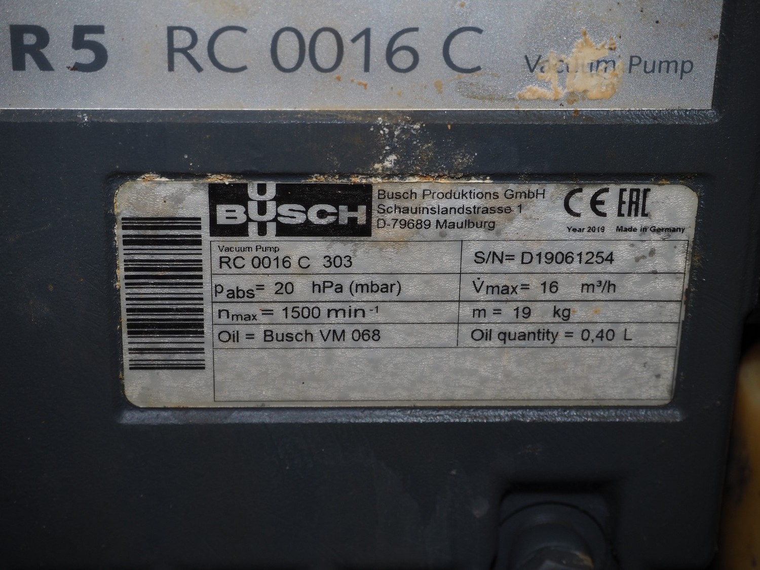 Hoegger Alpina vacuum filling machine, type: KF-250, machine number: 829011, 380 V, 4 kW, Busch vacuum pump, type: RC 0016 C 303, dimensions: 700 mm x 650 mm x 1800 mm.