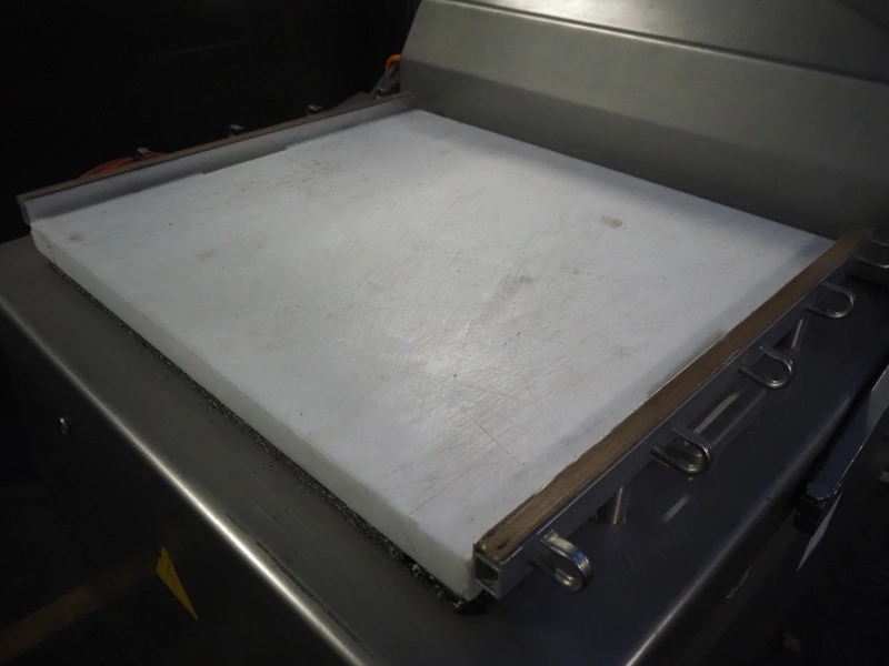 Multivac mobile double chamber vacuum machine with gas flush, type: C 500, machine number: 805, year of construction: 1998, 400 V, 3 Ph, 50 Hz, 22 A, 8 kW, chamber dimensions: (2x) 740 mm x 660 mm, seal length: (4x) 660 mm, total dimensions: 1650 mm x 1050 mm x 1100 mm.