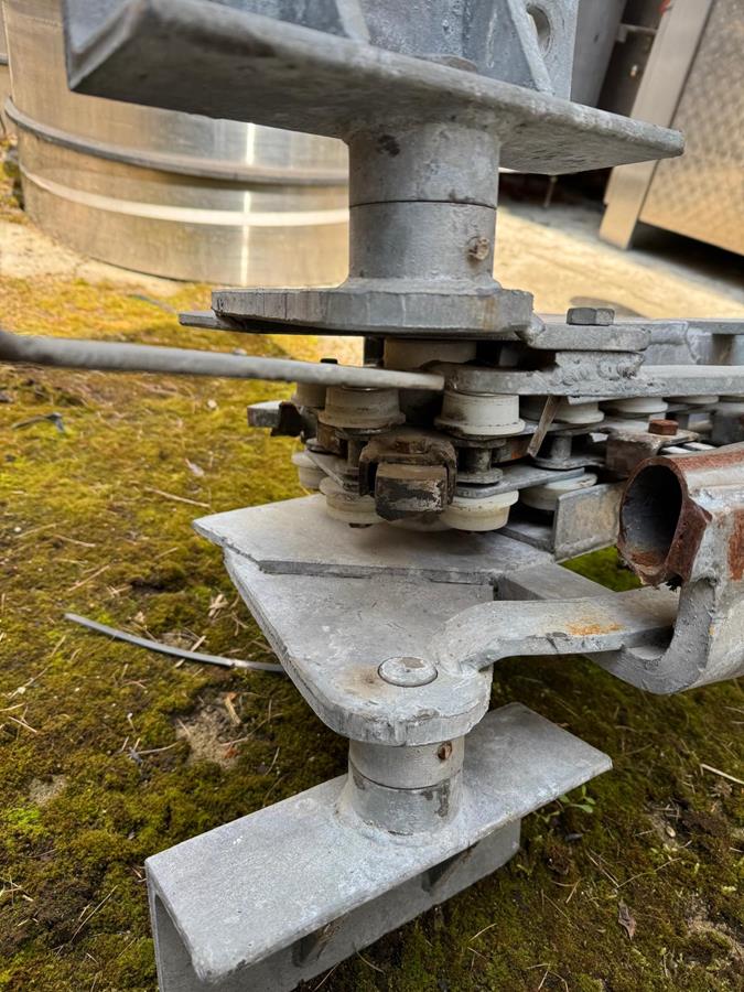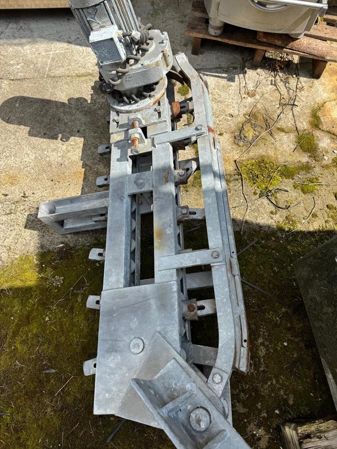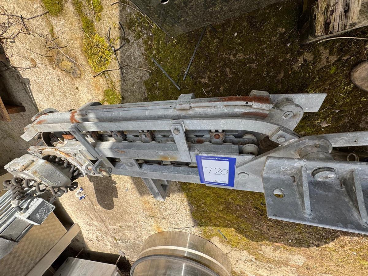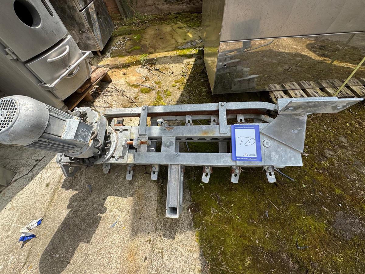Banns differential conveyor for moving half-carcasses with electric drive, with adjustable angle and height: from 400 mm to 800 mm, total dimensions: 1400 mm x 600 mm x 400 mm.