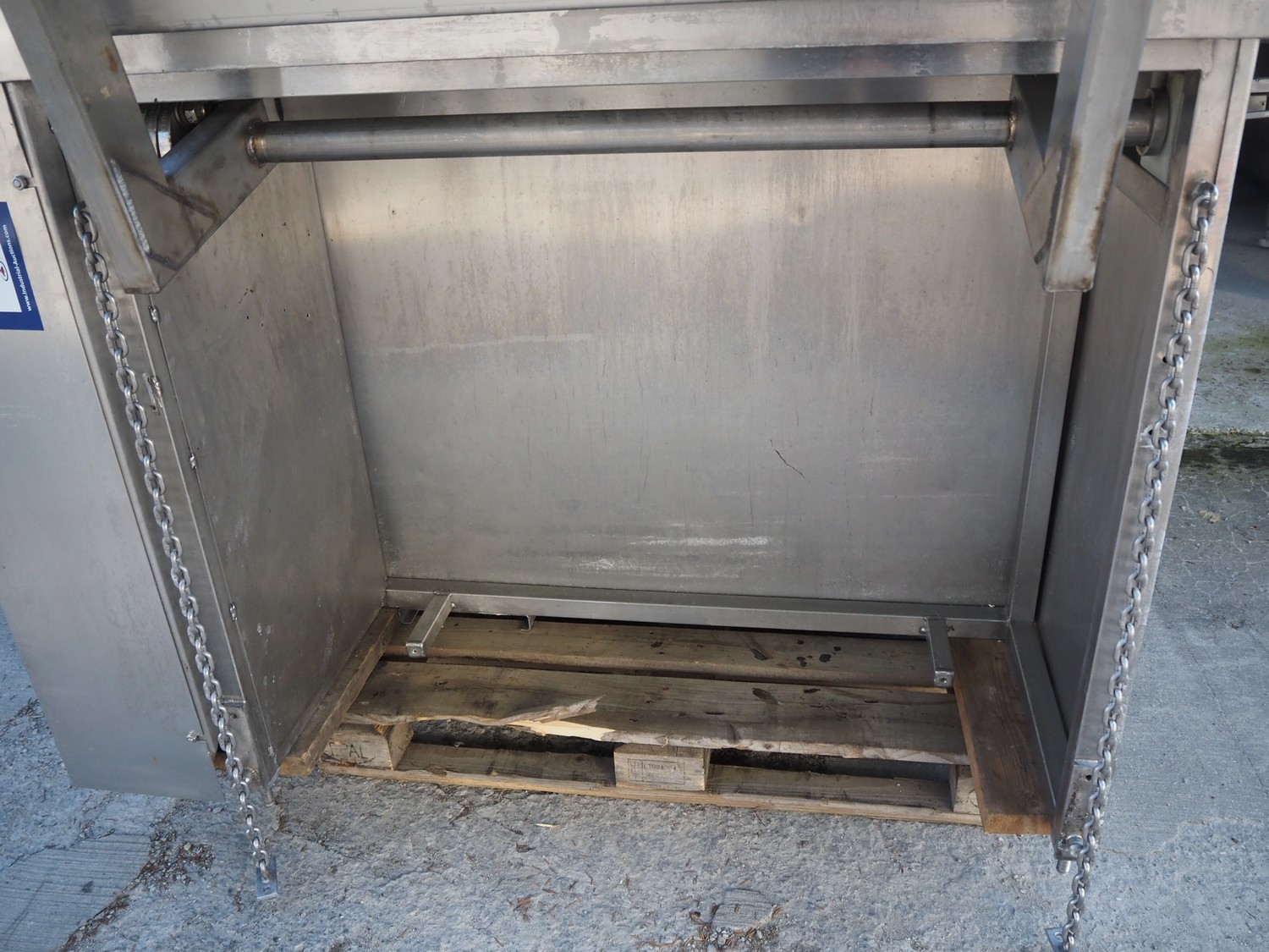 Alpe meat bin washer, type: 4000, serial number: 008735223-04, 380 V, 50 A, 11.5 kW, dimensions: 1700 mm x 1500 mm x 2150 mm.