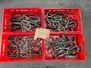 4 crates with 100 meat hooks, DIN 250, dimensions hooks: 350 mm x 120 mm, dimensions crates: 600 mm x 400 mm.