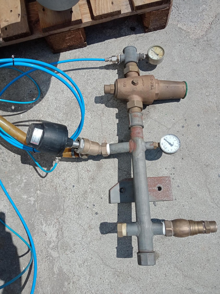 Riniker cannon compressed air system for waste transport, inlet diameter: 155 mm, volume: 400 liter, total dimensions: 2050 mm x 850 mm x 1750 mm.